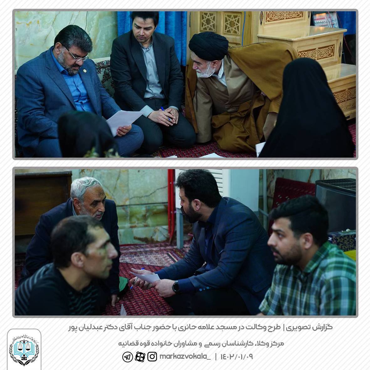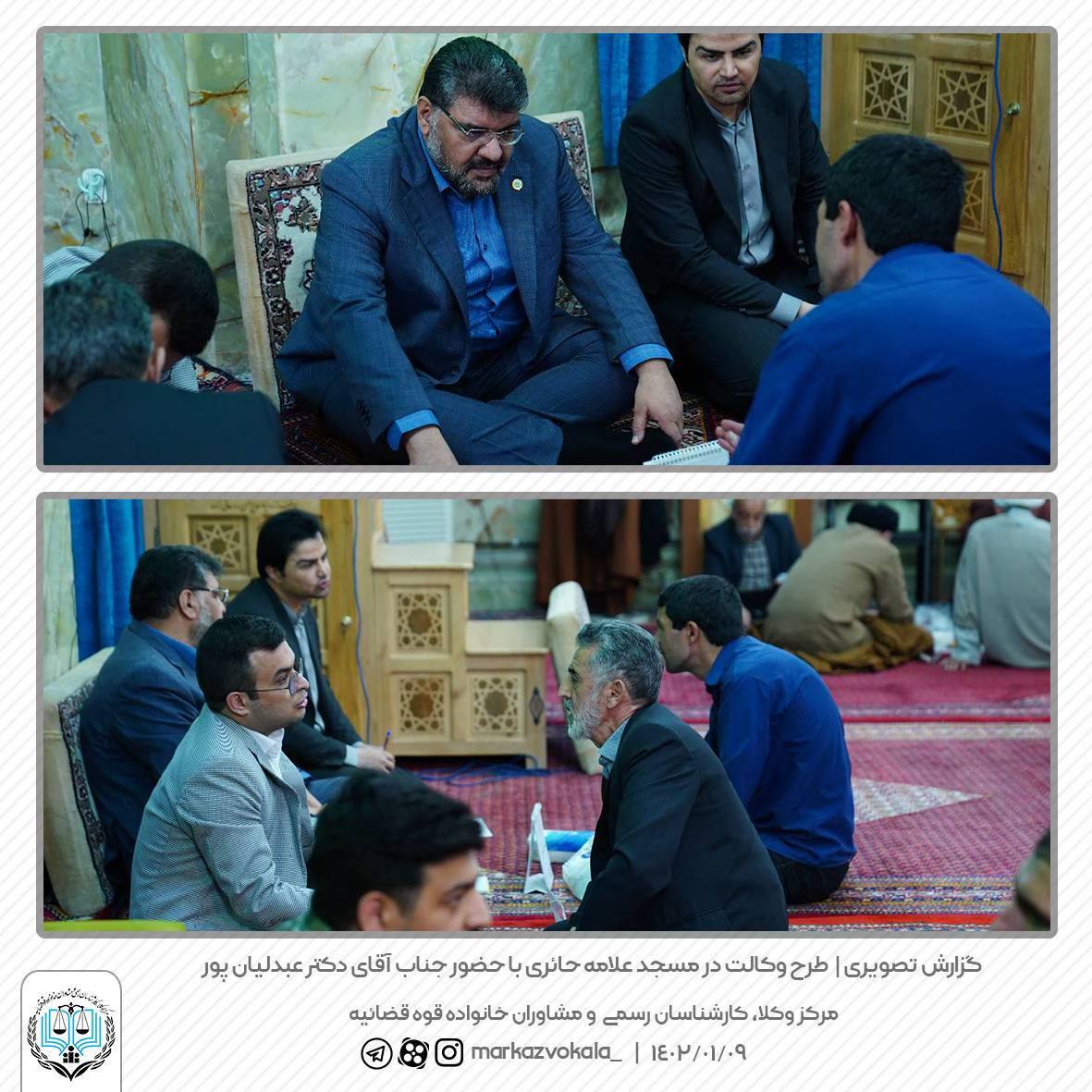 خبرگزاری میزان – بنا به اعلام پایگاه اطلاع رسانی مرکز وکلا، حسن عبدلیان پور رئیس مرکز وکلا، کارشناسان رسمی و مشاوران خانواده قوه قضاییه، در راستای اجرای طرح وکالت در مساجد مختلف حضور یافت.