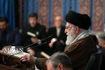 The scholars, reciters, and memorizers of the Quran participating in the 41st International Quran Competition of the Islamic Republic of Iran met with the Leader of the Islamic Revolution this morning (Sunday).