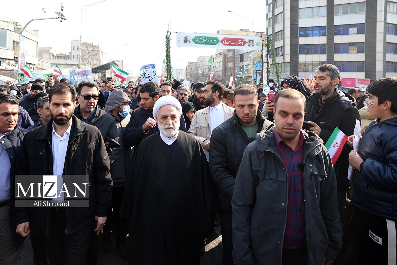 Mohseni Ejei participated in a huge and passionate march of various sections of the people of Tehran this morning, Monday, 22th Bahman, coinciding with the 46th anniversary of the glorious victory of the Islamic Revolution.