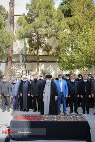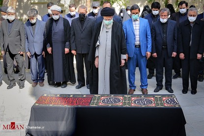 حضرت آیتالله خامنهای پیش از ظهر امروز (جمعه) با حضور در کنار پیکر سرکار خانم اعظم (عالیه) روحانی، همسر شهید آیتالله مرتضی مطهری ضمن قرائت فاتحه، بر پیکر آن همراه و یار استاد مطهری نماز اقامه کردند. در این مراسم جمعی از اعضای خانواده و بستگان شهید مطهری نیز حضور داشتند.