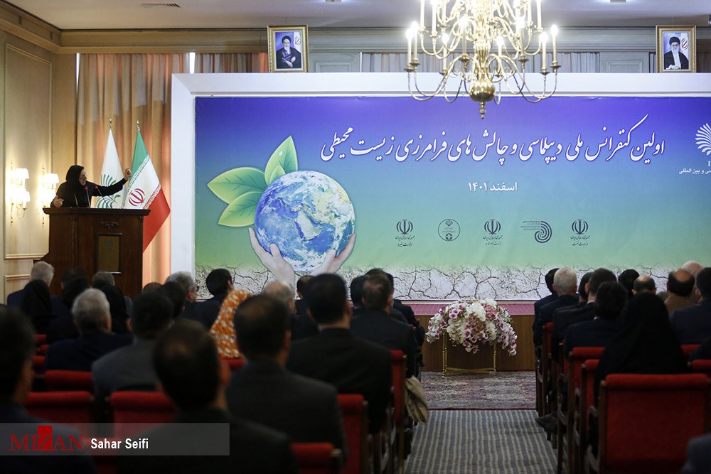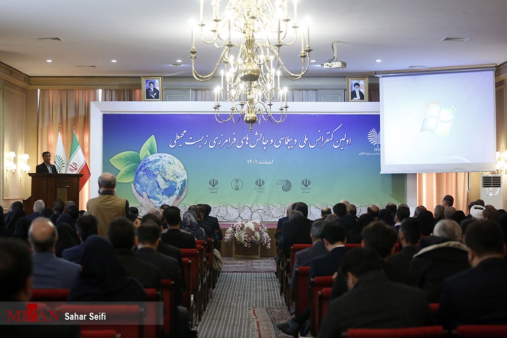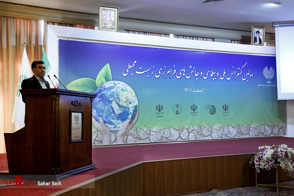 نخستین کنفرانس ملی دیپلماسی و چالشهای فرامرزی زیست محیطی، در راستای تحقق فرامین و دستورات مقام معظم رهبری در حوزه محیط زیست و ماموریتهای محوله از سوی ریاست محترم جمهوری روز یکشنبه، ۷ اسفند، برای بررسی زمینههای توسعه دیپلماسی زیست محیطی کشور در چهار حوزه مهم تغییرات آب و هوایی، طوفانهای گردوغبار، رودخانههای مرزی و آلودگیهای دریایی در قالب میزگردهای جداگانه با حضور علی سلاجقه، رئیس سازمان محیط زیست، در محل دفتر مطالعات سیاسی و بین المللی وزارت امور خارجه برگزار شد.
