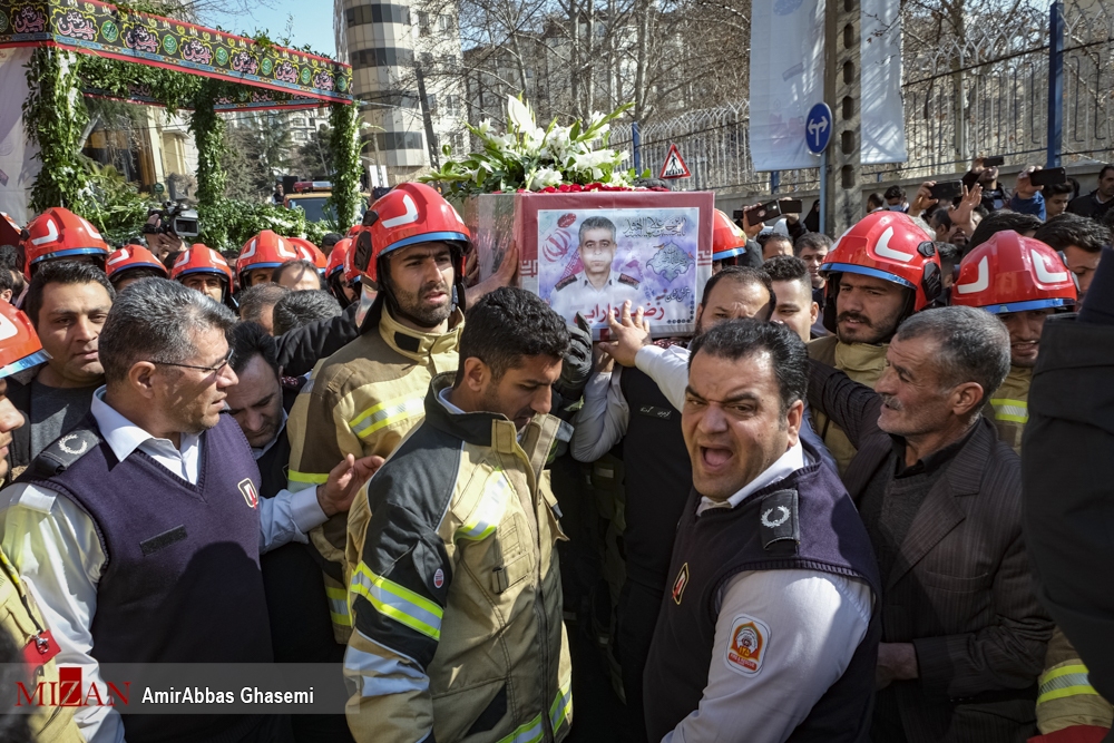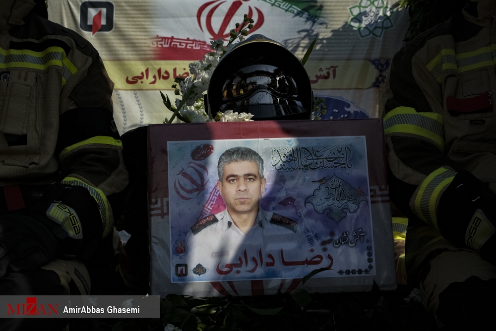 تشییع پیکر آتش نشان شهید دارابی در امامزاده علی اکبر چیذر (ع)