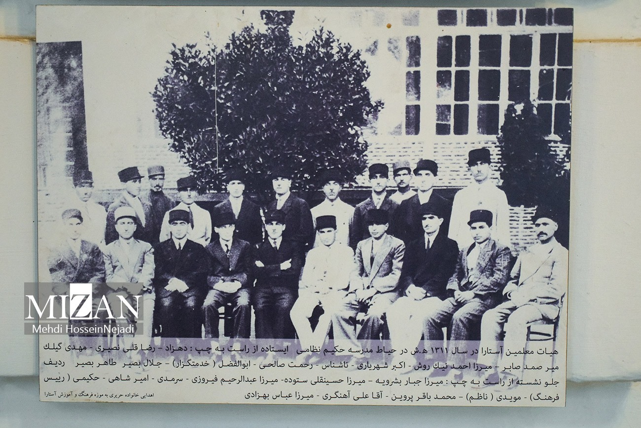 مدرسه تاریخی حکیم نظامی آستارا در استان گیلان که در سال ۱۲۸۷ هجری خورشیدی از طرف مردم فرهنگ دوست این خطه بنیان گذاشته و هم اکنون به موزه تخصصی تاریخ، فرهنگ و آموزش تبدیل شده، در فهرست آثار ملی ایران به شماره ۱۵۲۲۰ به ثبت رسیده است. تدریس نیما یوشیج بنیانگذار شعر نو در سال‌های ابتدایی ۱۳۰۰ هجری خورشیدی و دانش آموختگی شخصیت‌های برجسته علمی، پزشکی، نظامی، فرهنگی و ادبی کشور از جمله سوابق درخشان آموزشی این مدرسه تاریخی است. مدرسه تاریخی حکیم نظامی آستارا با دارا بودن حیاط بزرگ، بام‌های سفالی، در و پنجره‌های چوبی و شومینه‌های چدنی، ترکیبی از معماری اصیل و بومی منطقه را در خود دارد. موزه تخصصی تاریخ، فرهنگ و آموزش حکیم نظامی که مالکیتش را اداره کل آموزش و پرورش و بهره‌برداری از آن را اداره کل میراث فرهنگی، گردشگری و صنایع دستی استان گیلان بر عهده دارد، به عنوان شناسنامه فرهنگی آستارا و نشان دهنده قدمت علم و دانش در این منطقه، از جمله مکان‌های دیدنی آستارا است که محل نمایش کتاب‌ها، عکس‌ها و ابزار‌های آموزشی قدیمی شده است. مدرسه حکیم نظامی آستارا از جمله اولین مدارس ایران و استان گیلان است که با تاریخ آموزش و پرورش کشورمان عجین و سبک جدید آموزش و گذر از مکتبخانه در آن رعایت و وجود این مدرسه باعث ریشه کنی بی سوادی در منطقه شده است.