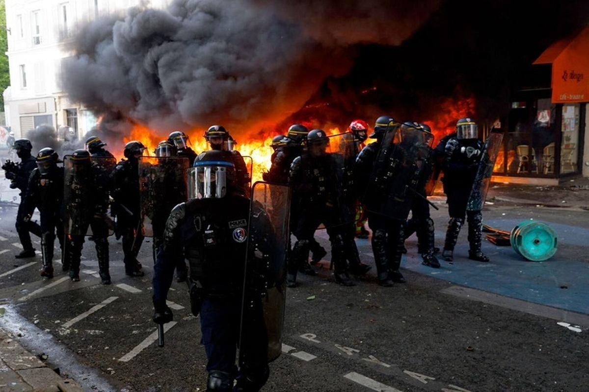 پلیس فرانسه روز دوشنبه با صدها معترض در پاریس و دیگر شهرها در جریان اعتراضات اول ماه می اتحادیههای کارگری علیه اصلاح حقوق بازنشستگی درگیر شد.