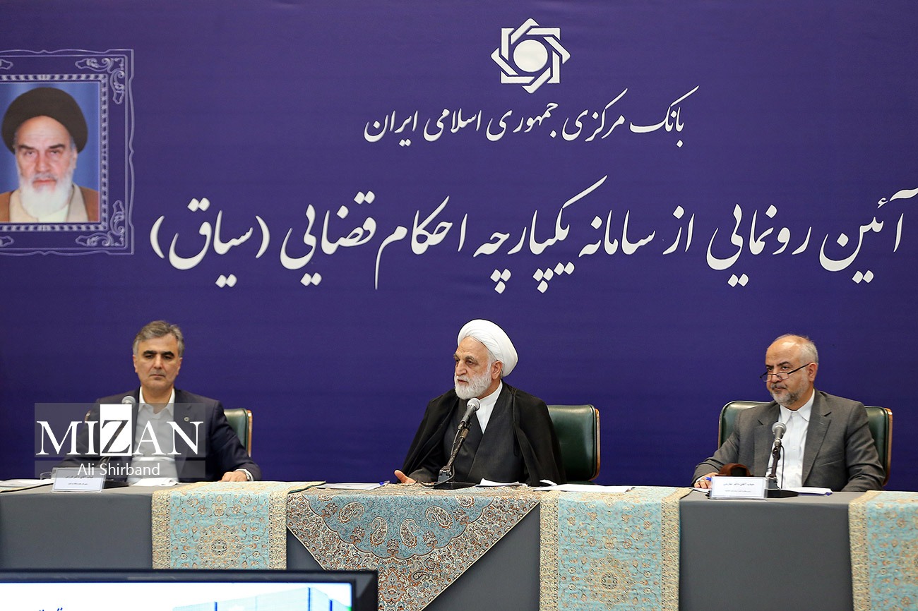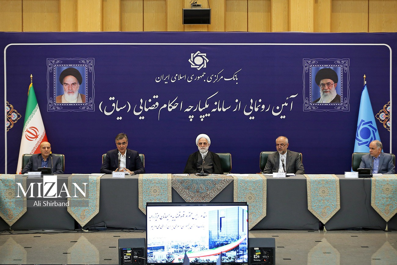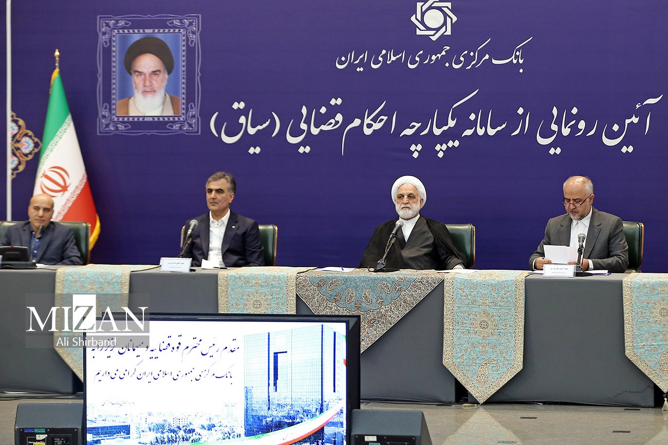 آیین رونمایی از سامانه یکپارچه احکام قضایی (سیاق) با حضور حجتالاسلام والمسلمین محسنی اژهای در بانک مرکزی برگزار شد.
