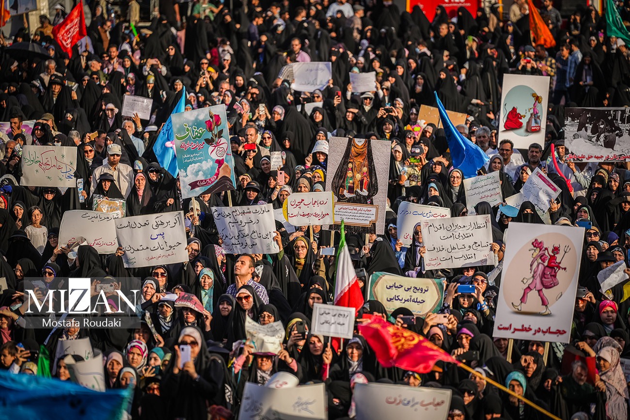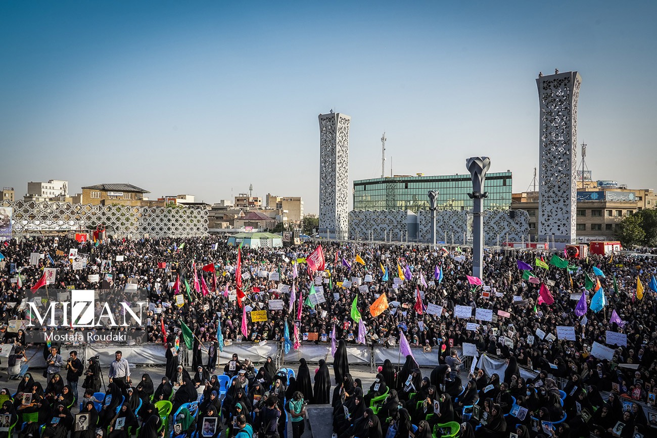 اجتماع عفاف وحجاب عصر چهارشنبه ( ۲۱ تیر ۱۴۰۲ ) به مناسبت سالگرد کشتار مسجد گوهرشاد و روز ملی عفاف و حجاب در میدان آیینی امام حسین(ع) برگزار شد.