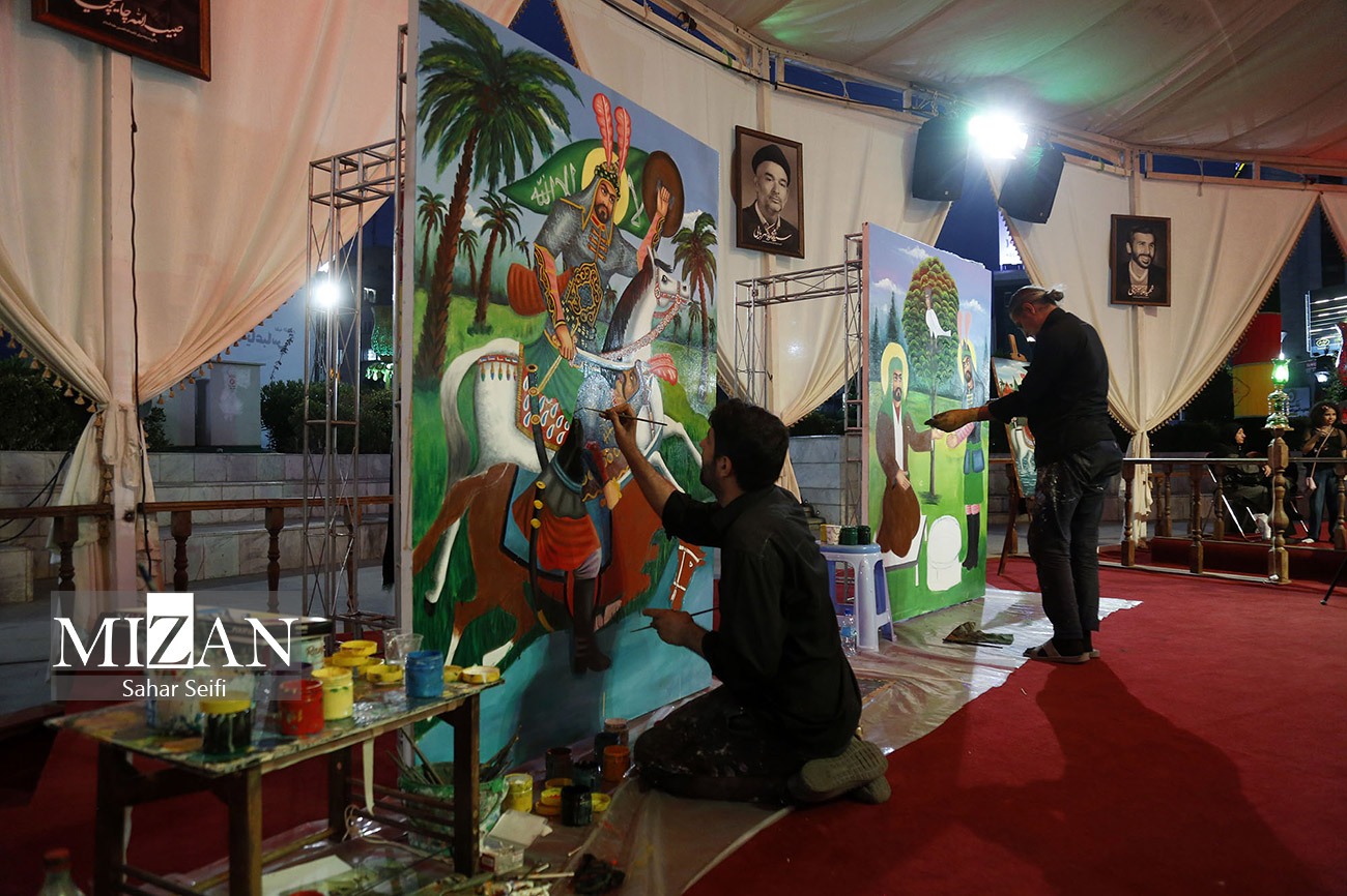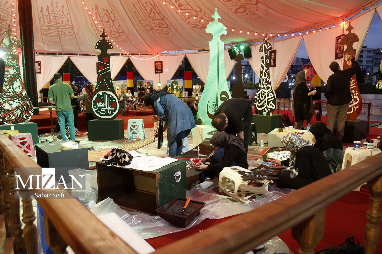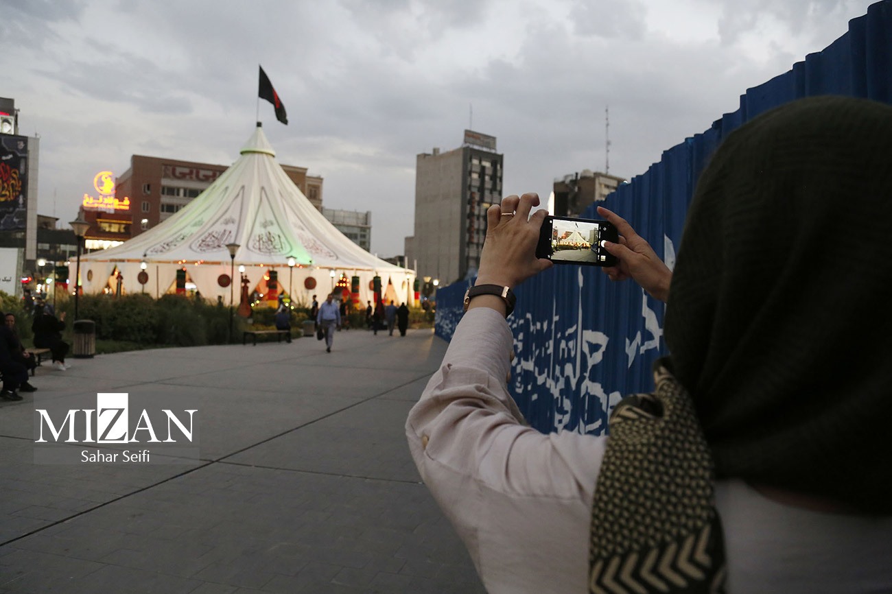 همزمان با ایام سوگواری ماه محرم و شهادت سالار شهیدان اباعبدالله حسین (ع) خیمه بزرگ هنرهای عاشورایی در پلازای میدان هفتم تیر به همت سازمان زیباسازی شهر تهران برپا شد.