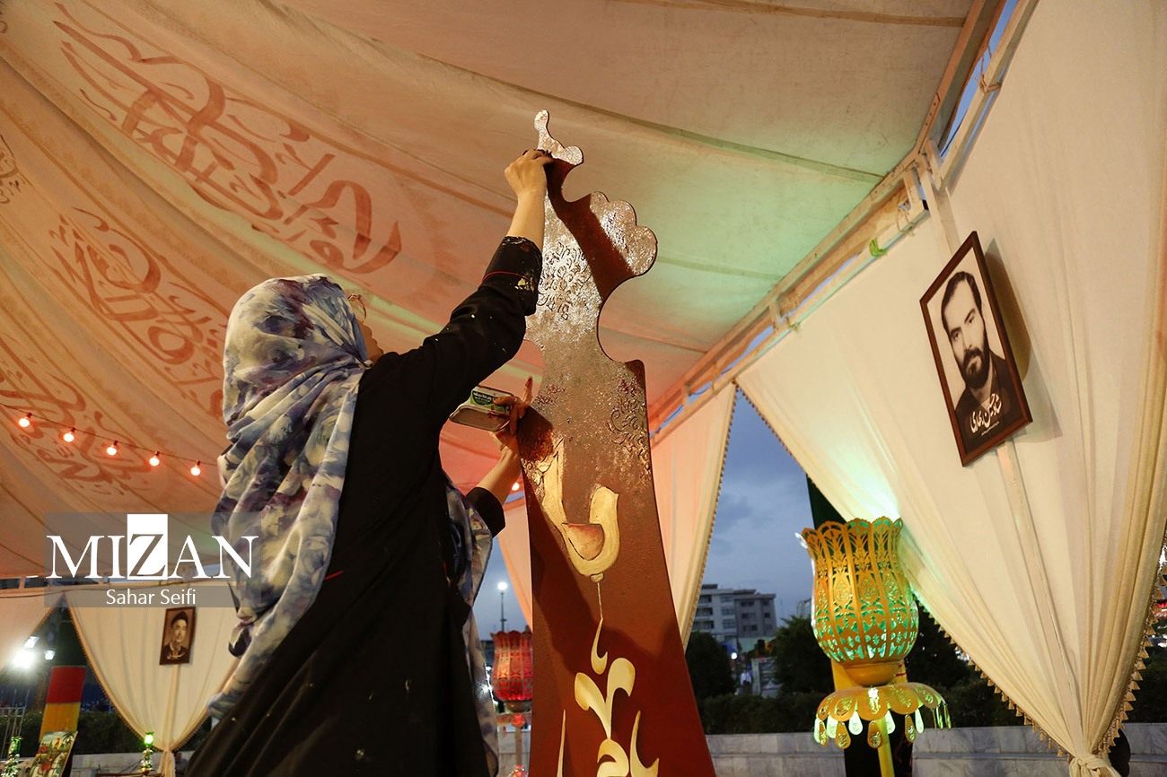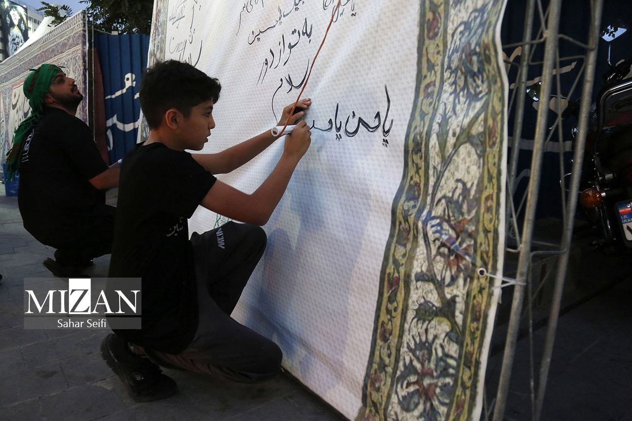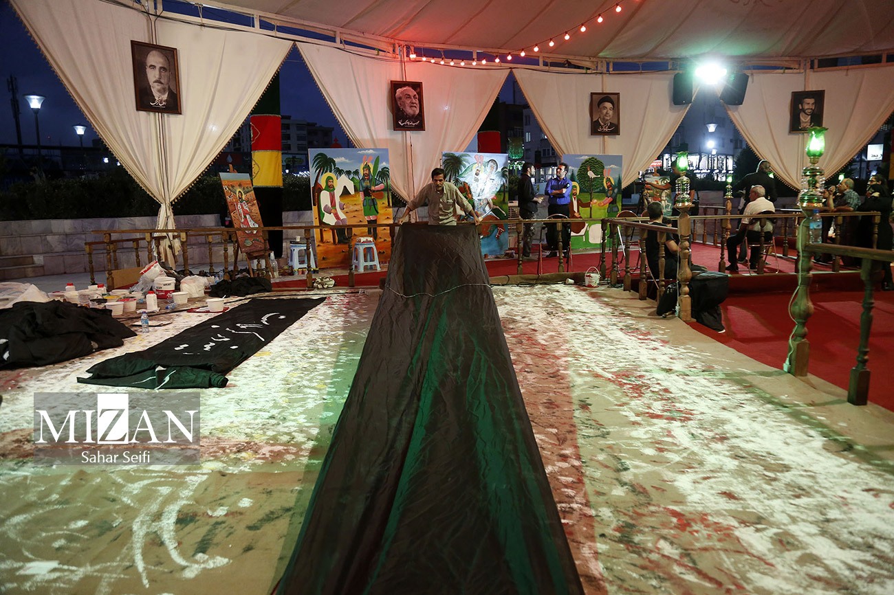 همزمان با ایام سوگواری ماه محرم و شهادت سالار شهیدان اباعبدالله حسین (ع) خیمه بزرگ هنرهای عاشورایی در پلازای میدان هفتم تیر به همت سازمان زیباسازی شهر تهران برپا شد.