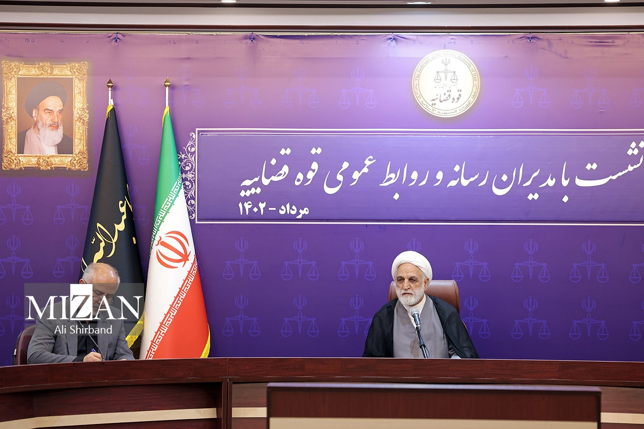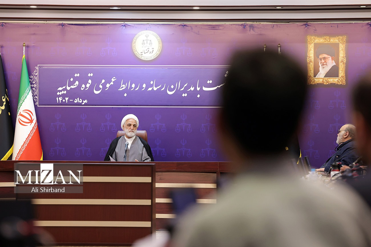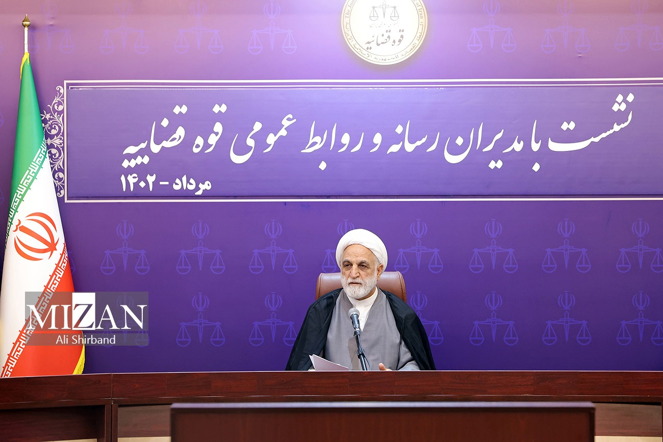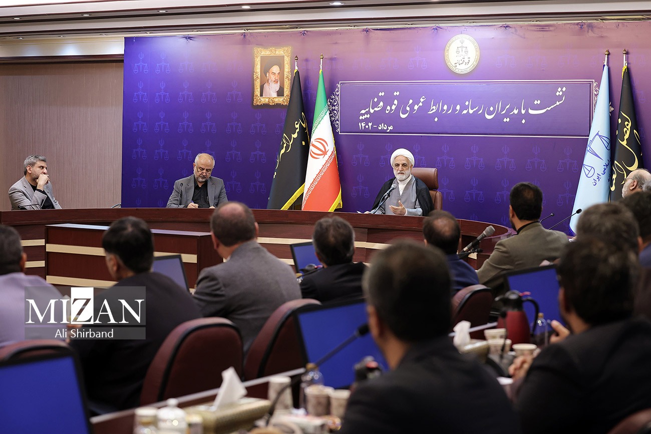 نشست حجتالاسلاموالمسلمین محسنی اژهای رئیس قوه قضاییه با خبرنگاران و مدیران رسانه و روابط عمومی قوه قضاییه در سراسر کشور شب گذشته همزمان با روز خبرنگار برگزار شد.