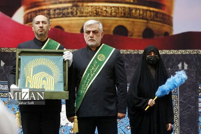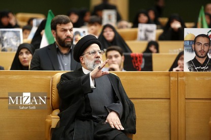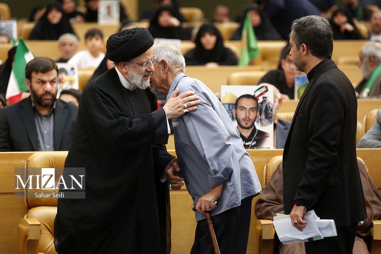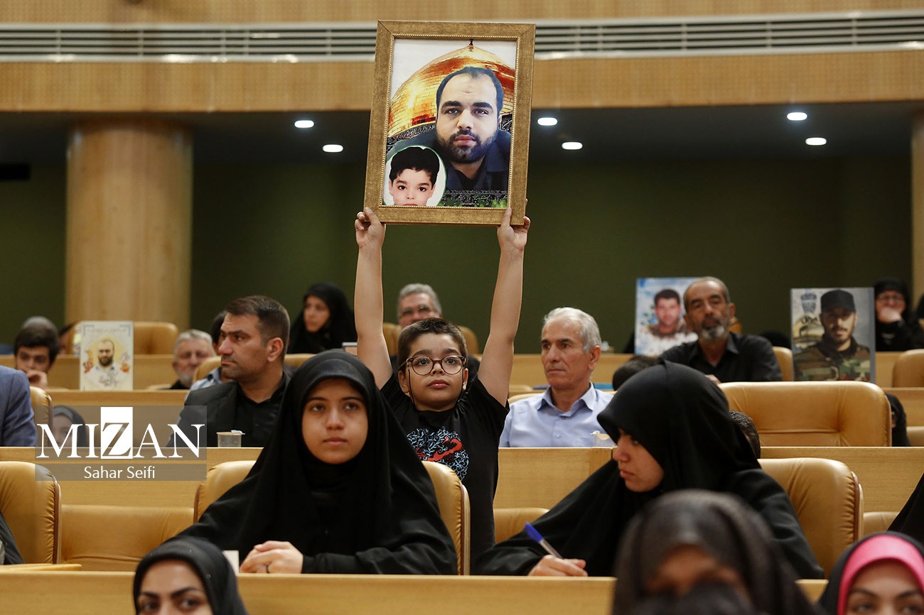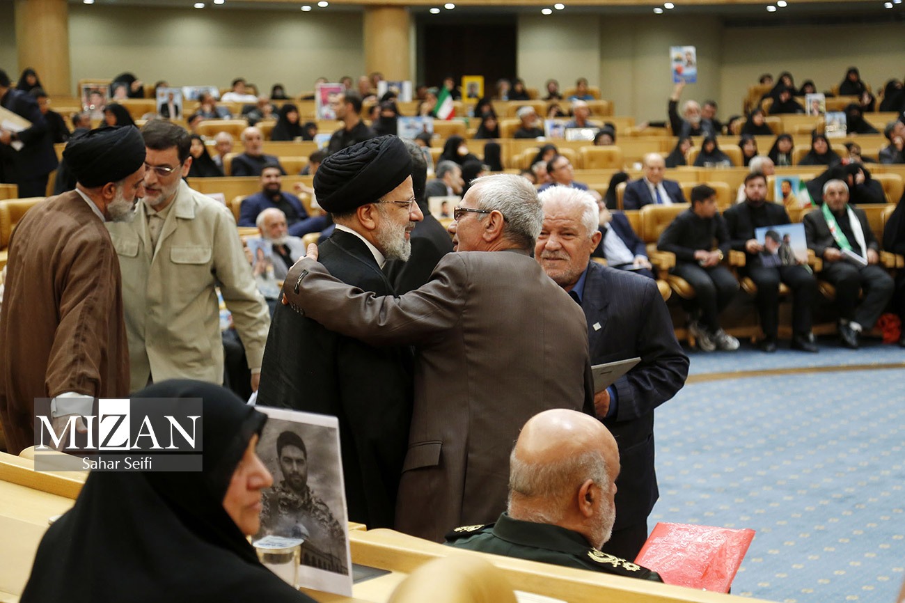 مراسم بزرگداشت شهدای مدافع حرم صبح چهارشنبه (۱۸ مرداد ۱۴۰۲) با حضور آیت الله رئیسی، رئیس جمهور و جمعی از خانواده شهدا در سالن اجلاس سران برگزار شد.