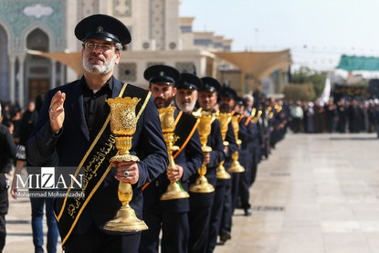 دسته عزاداری خادمان حرم مطهر حضرت معصومه(س) به مناسبت سالروز شهادت امام رضا (ع)از مسجد امام حسن عسکری(ع) به سمت حرم مطهر حضرت معصومه(س) برپا شد.