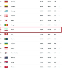 این در حالیست که کرهجنوبی با یک پله سقوط و عربستان سعودی با ۳ پله نزول تا رده ۲۶ و ۵۷ رنکینگ جهانی سقوط کردند.