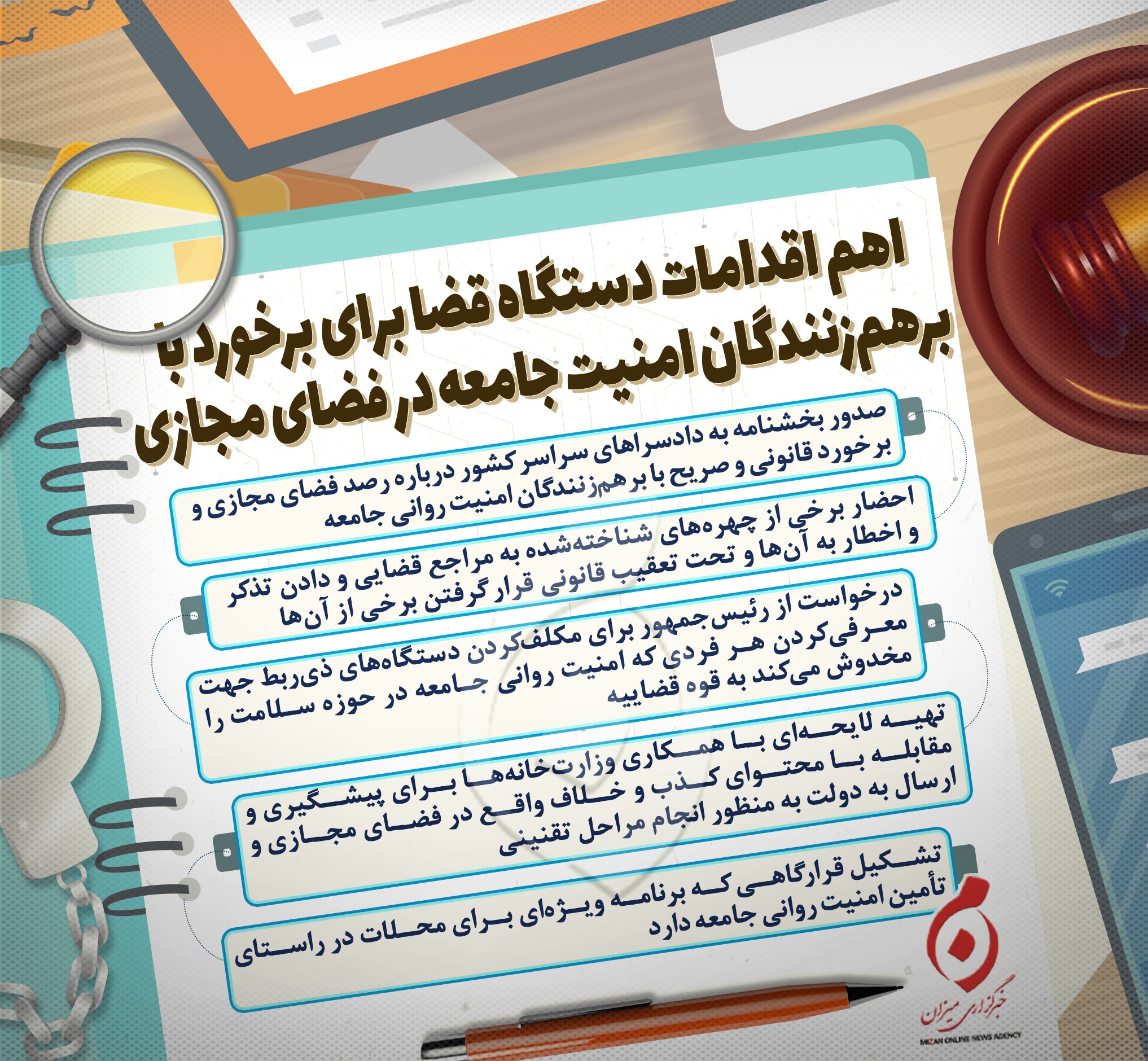 اینفوگرافیک | اهم اقدامات دستگاه قضا برای برخورد با برهمزنندگان امنیت جامعه در فضای مجازی