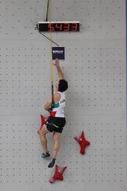رضا علیپور در دیدار فینال با جین بائو لونگ از چین مسابقه داد و با ثبت زمان پنج ثانیه و ۳۰۲ هزارم ثانیه، انتهای طلایی دیواره را لمس و از عنوان قهرمانی خود دفاع کرد. حریف چینی او هم از دیواره لیز خورد و ترجیح داد مسابقه را ادامه ندهد.