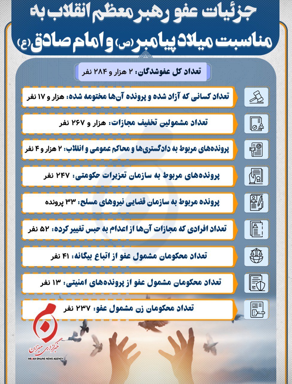 اینفوگرافیک | جزئیات عفو رهبر معظم انقلاب به مناسبت میلاد پیامبر(ص) و امام صادق(ع)