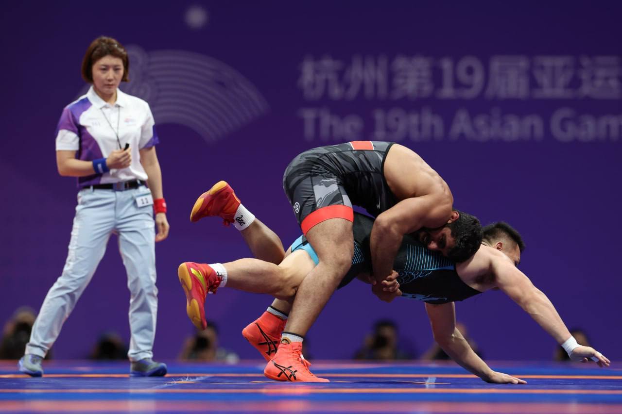 خبرگزاری میزان - در ادامه رقابتهای کشتی فرنگی بازیهای آسیایی هانگژو نمایندگان کشورمان در ۲ وزن باقیمانده به روی تشک رفتهاند.