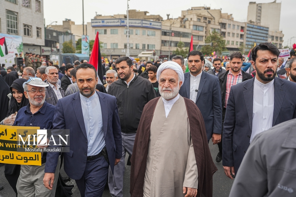 رئیس قوه قضاییه در راهپیمایی حمایت از مردم مظلوم فلسطین و همچنین عملیات طوفان الأقصی فلسطینیان شرکت کرد.