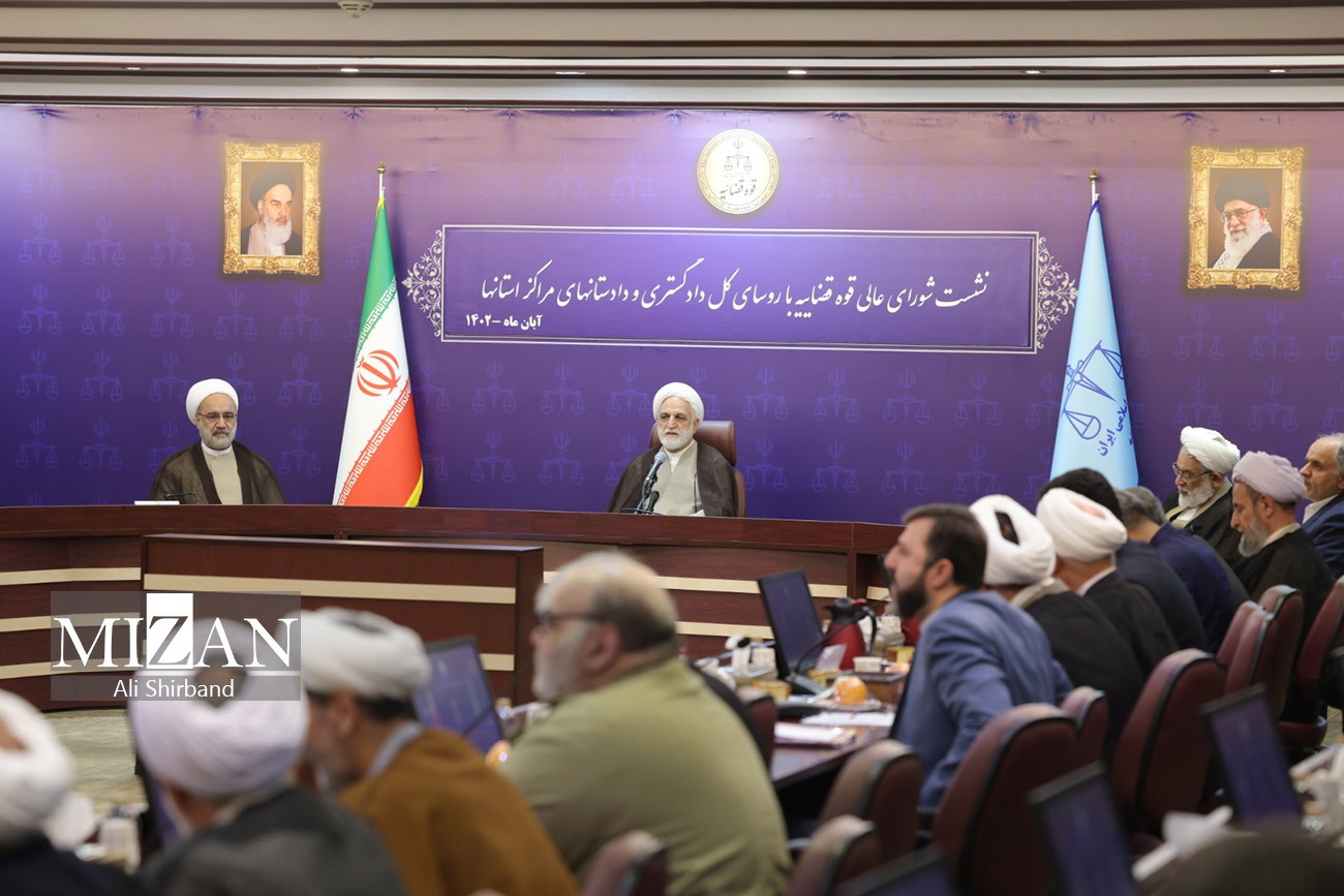 نشست اعضای شورای عالی قوه قضاییه با رؤسای کل دادگستری و دادستانهای مراکز استانها صبح امروز پنجشنبه (۱۸ آبان ۱۴۰۲) با حضور حجتالاسلاموالمسلمین محسنی اژهای رئیس قوه قضاییه برگزار شد.