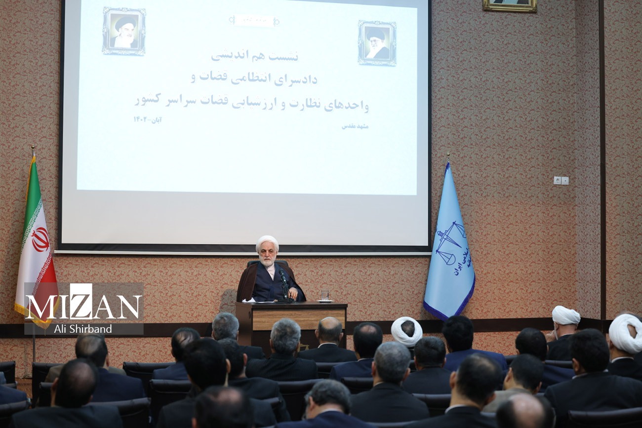 نشست هماندیشی دادسرای انتظامی قضات و واحدهای نظارت و ارزشیابی قضات سراسر کشور با حضور حجتالاسلام والمسلمین محسنی اژهای رئیس قوه قضاییه صبح امروز پنجشنبه (۲۵ آبان ۱۴۰۲) در مشهد برگزار شد.