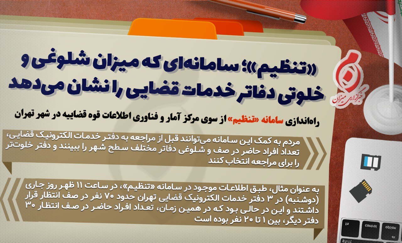 اینفوگرافیک | «تنظیم»؛ سامانه‌ای که میزان شلوغی و خلوتی دفاتر خدمات قضایی را نشان می‌دهد