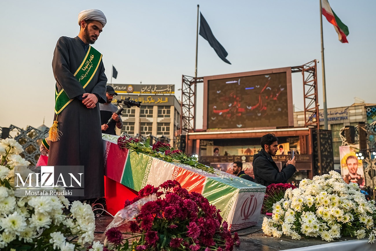 همزمان با ایام فاطمیه مراسم وداع و بدرقه پیکر مطهر ۷ شهید مدافع حرم، عصر دوشنبه (۱۳ آذر ۱۴۰۲) در میدان امام حسین (ع) تهران برگزار شد.