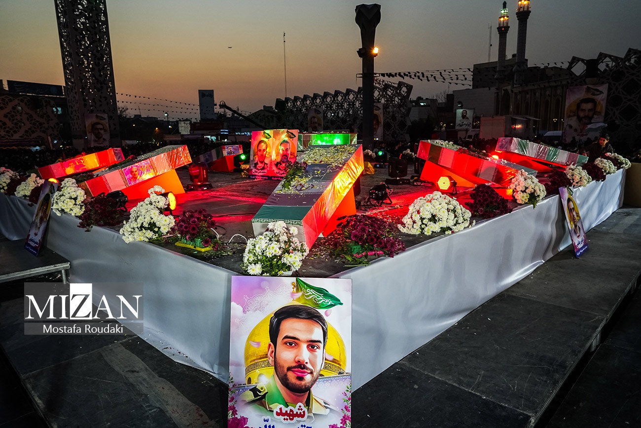 مراسم وداع با پیکر سه شهید مدافع حرم در معراجالشهدا برگزار شد