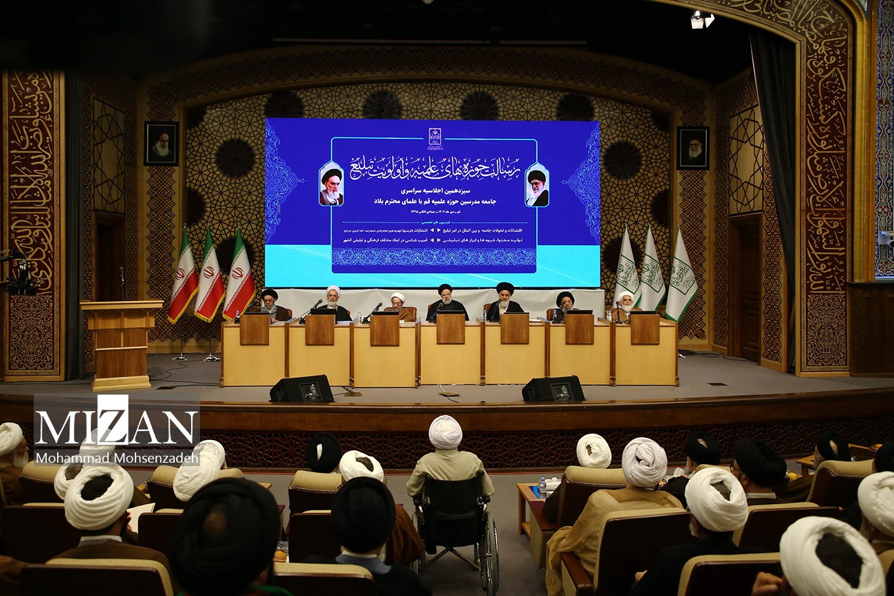 سیزدهمین اجلاسیه سراسری جامعه مدرسین و علمای بلاد روز پنجشنبه (۷ دی ۱۴۰۲) در سالن همایشهای مدرسه علمیه امام کاظم (ع) با حضور آیتالله رئیسی رئیس جمهور، جامعه مدرسین، نمایندگان مجلس خبرگان رهبری، نمایندگان بیوت مراجع عظام تقلید و شخصیتهای برجسته حوزوی و اساتید و روحانیون قم برگزار شد.