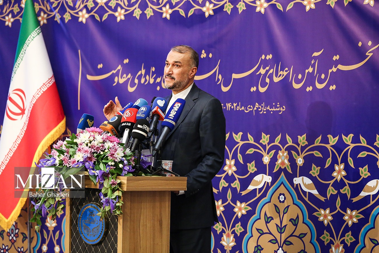 مراسم اعطای تندیس دانشگاه تهران به نمادهای مقاومت؛ شامگاه دوشنبه (۱۱ دی ۱۴۰۲) با حضور جمعی از وزرا، مسئولان و فعالام محور مقاومت در تالار علامه امینی دانشگاه تهران برگزارشد.