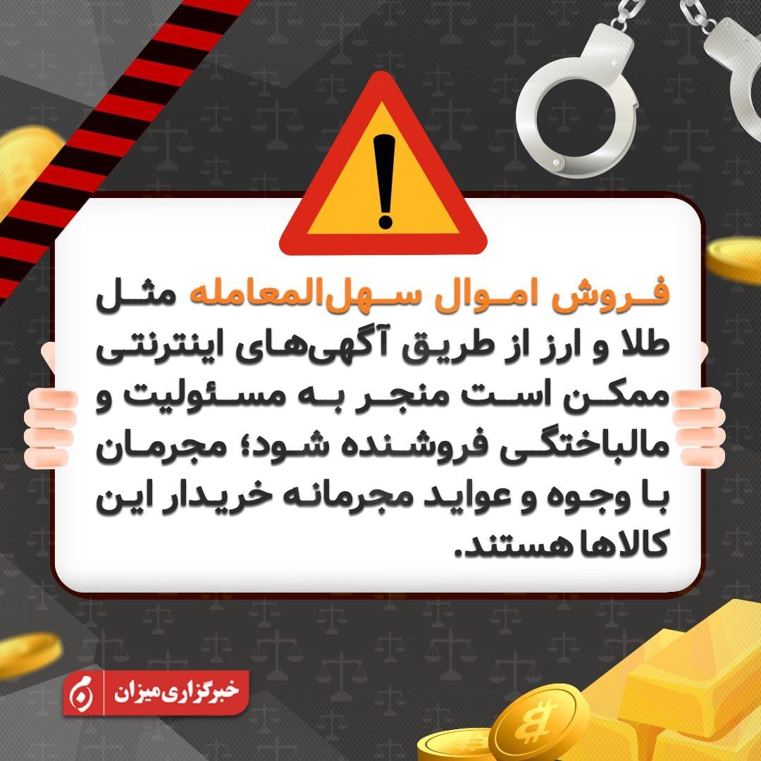 اینفوگرافیک | فروش اموال سهلالمعامله مثل طلا و ارز از طریق آگهیهای اینترنتی، ممکن است منجر به مسئولیت و مالباختگی فروشنده شود