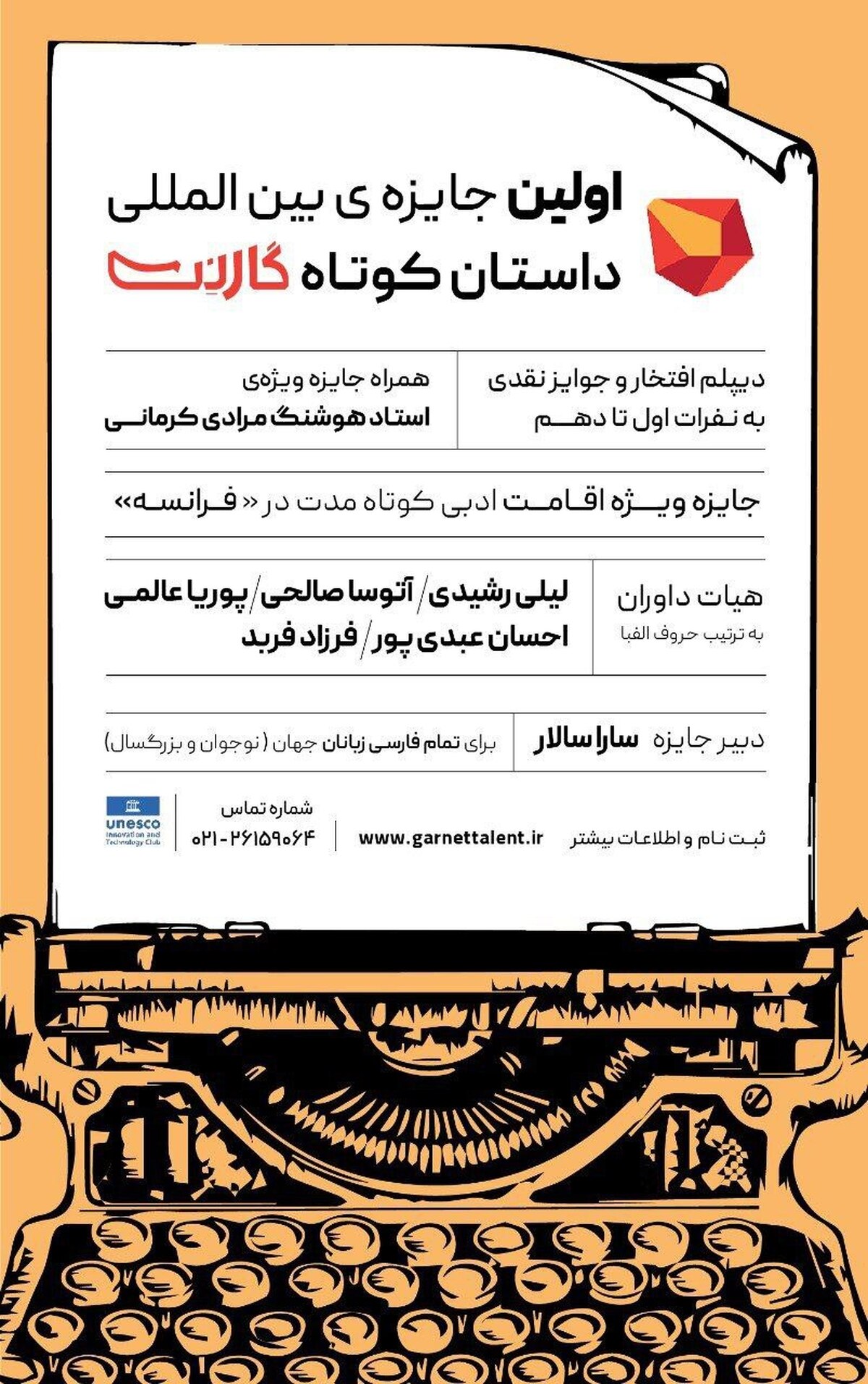علاقهمندان برای ثبتنام و دریافت اطلاعات بیشتر به آدرس http://garnettalent.ir/story-prize مراجعه کنند.