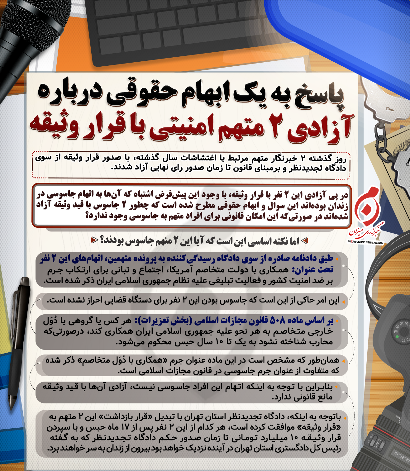 اینفوگرافیک | پاسخ به یک ابهام حقوقی درباره آزادی ۲ متهم امنیتی با قرار وثیقه