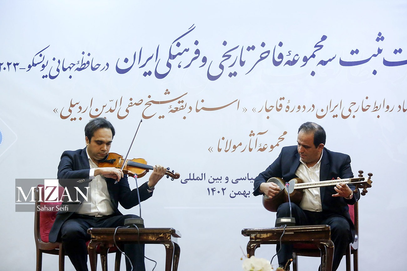 آیین گرامیداشت ثبت سه مجموعه فاخر تاریخی و فرهنگی ایران در یونسکو صبح امروز دوشنبه (۲ بهمن ۱۴۰۲) با حضور شیخ الاسلامی رئیس مرکز مطالعات سیاسی و بین المللی وزارت خارجه، دبیرکل کمیسیون ملی یونسکو، مقامات موزه ملی ایران و تعدادی از سفرا در دفتر مطالعات سیاسی و بین المللی وزارت خارجه برگزار شد.