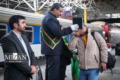 همزمان با آغاز سفرهای نوروزی جمعی از مسافران ایستگاه راه آهن تهران، عصر شنبه ( ۲۶ اسفند ۱۴۰۲) با حضور خادم یاران رضوی بدرقه شدند.