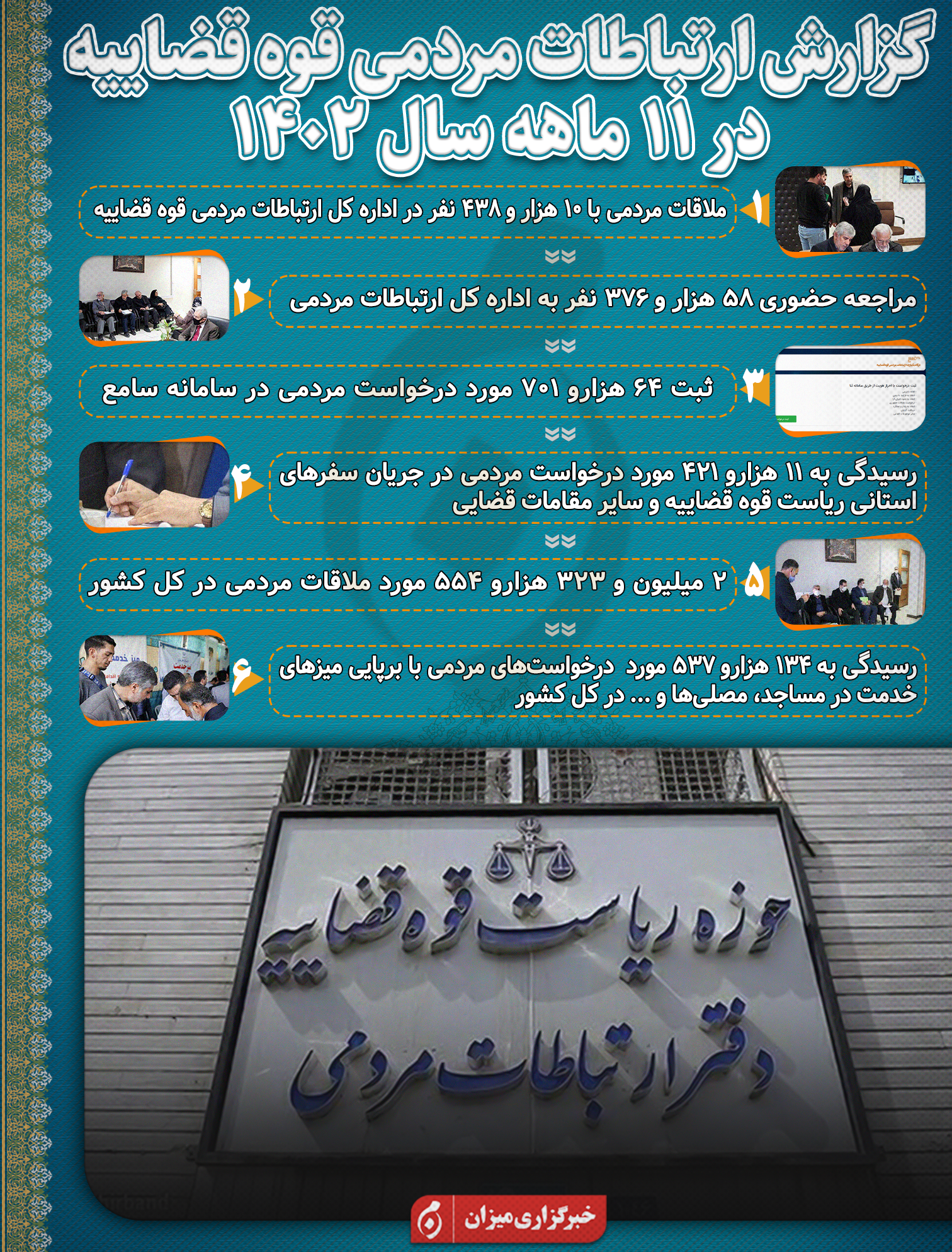 اینفوگرافیک | گزارشی از ارتباطات مردمی قوه قضاییه در ۱۱ ماهه سال ۱۴۰۲