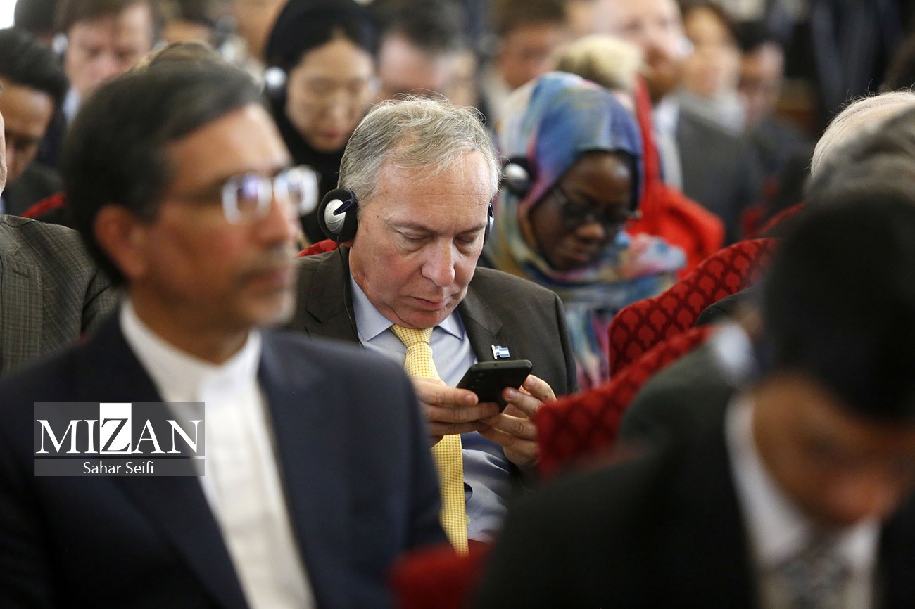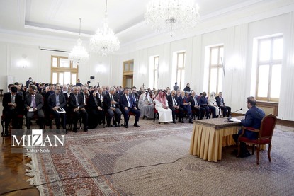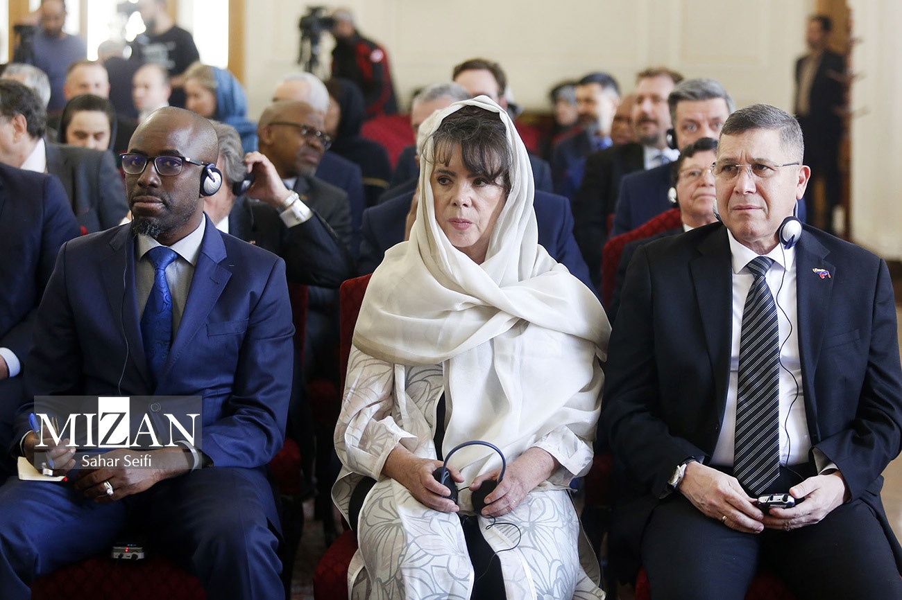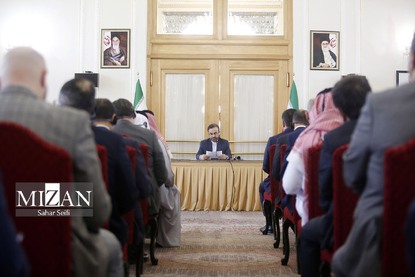 نشست توجیهی رضا نجفی، معاون امور حقوقی و بینالمللی وزیر امور خارجه با سفرا و روسای نمایندگیهای خارجی مقیم تهران در خصوص تحولات غزه و حمله تروریستی به بخش کنسولی سفارت جمهوری اسلامی ایران در دمشق روز چهارشنبه (۱۵ فروردین ۱۴۰۳) در ساختمان شماره یک وزارت امور خارجه برگزار شد.
