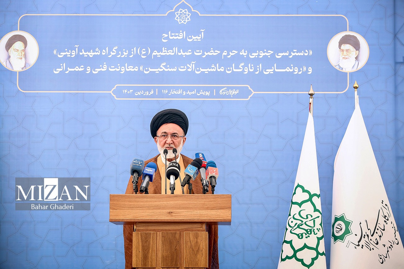 مراسم افتتاح دسترسی جنوبی به حرم حضرت عبدالعظیم(ع) از بزرگراه آوینی و رونمایی از ناوگان ماشین آلات سنگین معاونت فنی و عمرانی در صد و شانزدهمین پویش امید و افتخار با حضور حجت‌السلام والمسلمین قاضی عسکر تولیت آستان حضرت عبدالعظیم حسنی (ع)، مهدی چمران رییس شورای اسلامی شهر تهران برگزار شد.