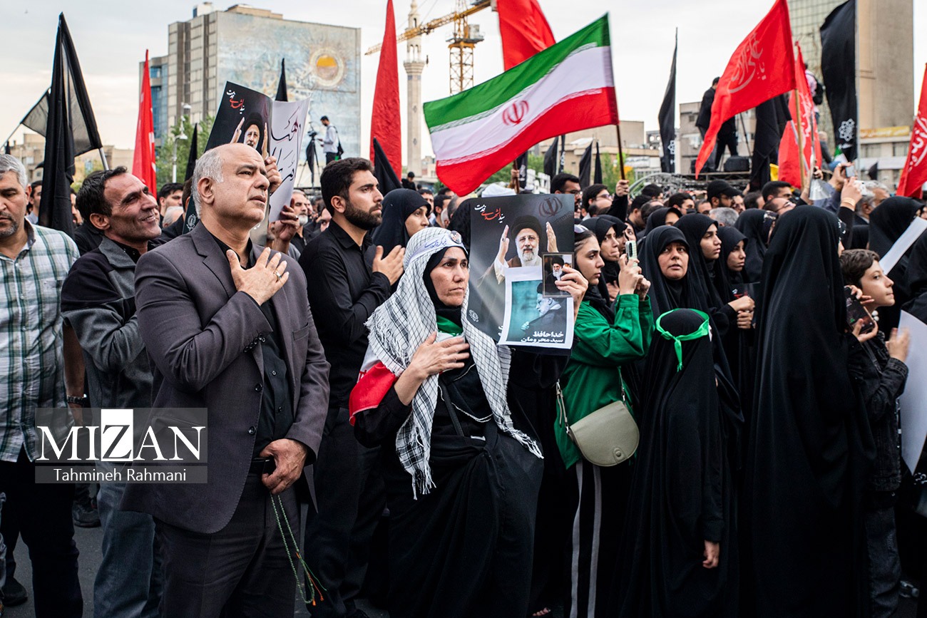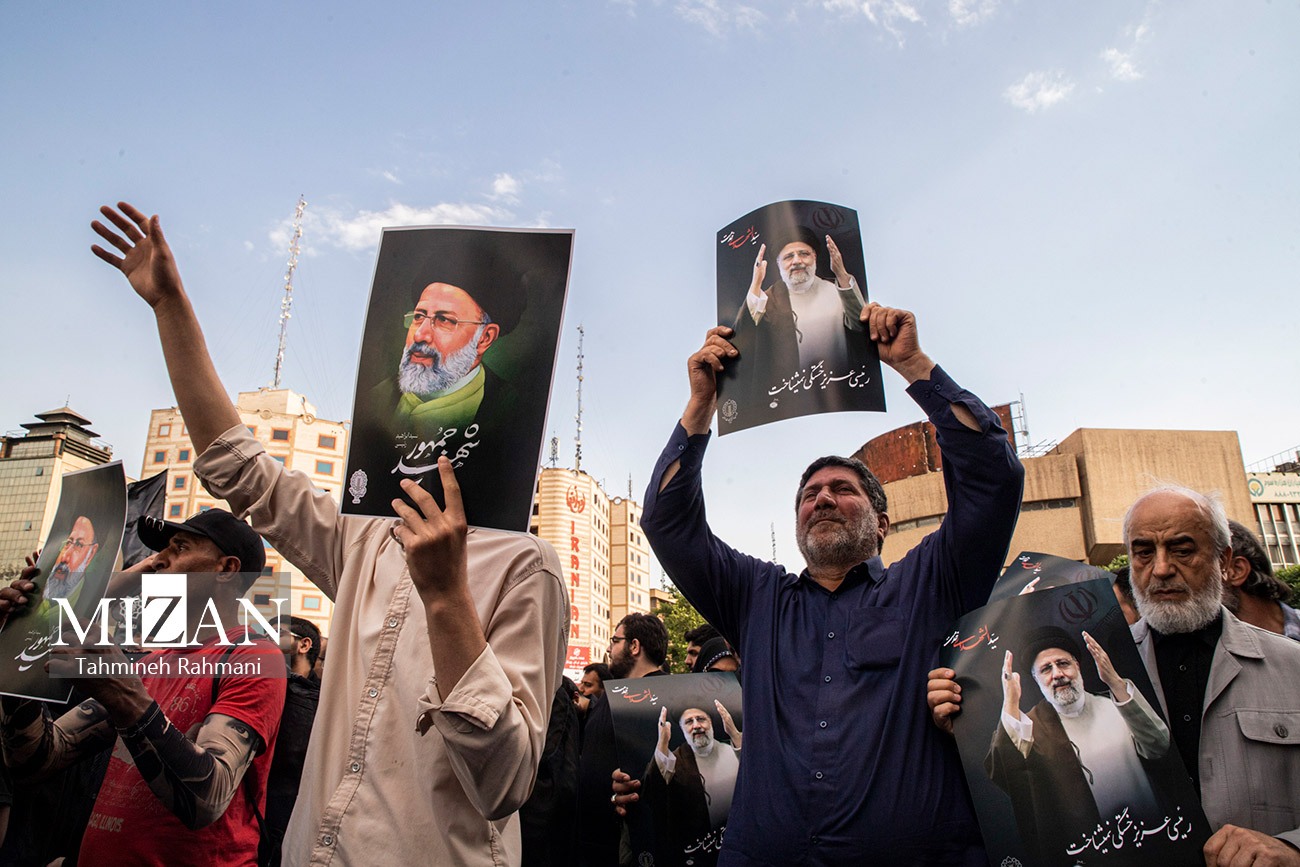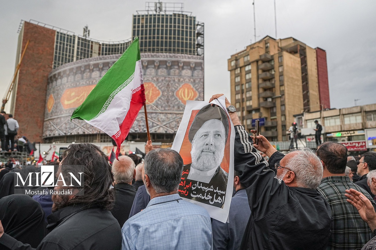 اجتماع مردم تهران برای پاسداشت سیدالشهدای خدمت شهید آیت الله سید ابراهیم رئیسی و همراهان وی در حادثه سقوط بالگرد در میدان ولیعصر (عج) برگزار شد.