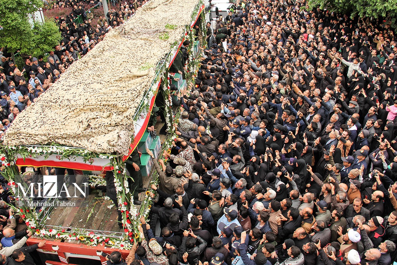 تشییع پیکر شهدای خدمت در تبریز/ حضور گسترده مردم برای در مراسم بدرقه رئیس جمهور