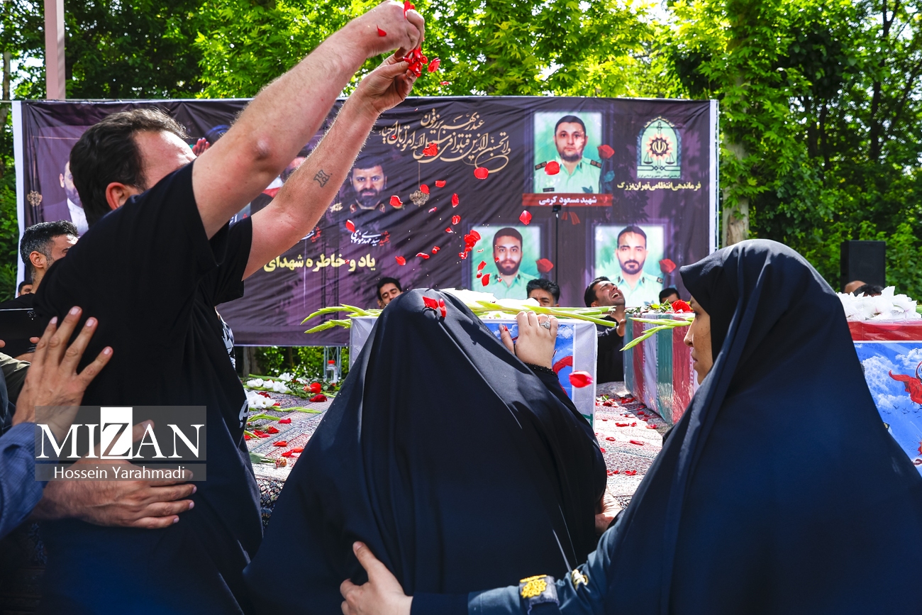 پیکر سه نفر از ماموران پلیس پیشگیری تهران بزرگ، «مسعود کرمی»، «احسان منشی زادگان» و «فرزاد روزبهانی» صبح سهشنبه (۱ خرداد ۱۴۰۳) با حضور جمعی از مسئولان فراجا و خانواده شهدا در فرماندهی انتظامی تهران بزرگ تشییع شد.