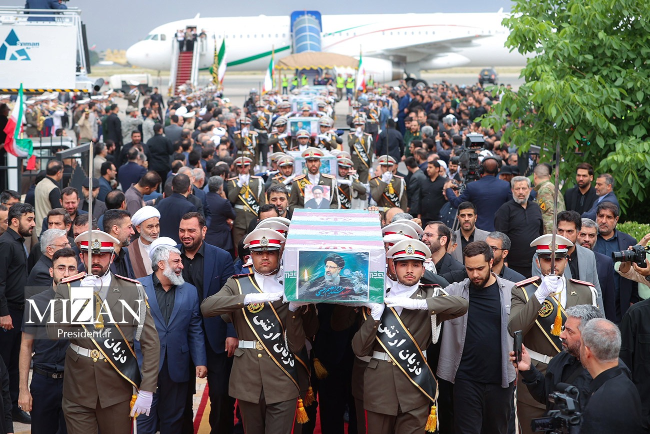 پیکر آیت الله «سید ابراهیم رئیسی» رئیس جمهور و شهدای خدمت، ظهر سه شنبه ( ۱ خرداد ۱۴۰۳) با استقبال اعضا هیئت دولت و مسئولان لشکری و کشوری وارد فرودگاه مهرآباد شد.