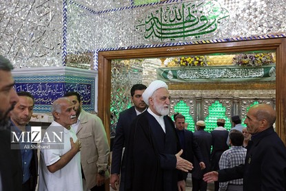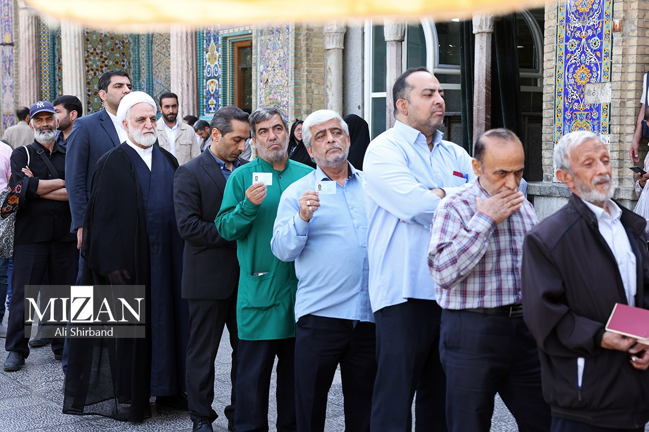 حجت‌الاسلام والمسلمین محسنی اژه‌ای، صبح امروز جمعه هشتم تیرماه ۱۴۰۳ در اولین ساعات آغاز رأی‌گیری چهاردهمین دوره انتخابات ریاست جمهوری با حضور در آستان مقدس حضرت عبدالعظیم (ع) و زیارت آن حضرت و سایر علما و بزرگان آرمیده در این آستان، در صف طولانی رای‌دهندگان انتخابات ریاست جمهوری قرار گرفت و پس از ۳۰ دقیقه انتظار در صف، رأی خود را به صندوق انداخت.