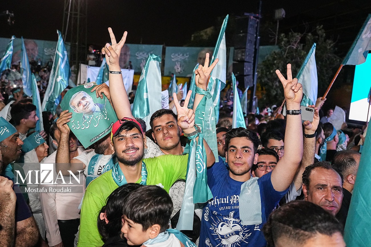 گردهمایی انتخاباتی «مسعود پزشکیان» کاندیدای چهاردهمین دوره انتخابات ریاست جمهوری چهارشنبه (۱۳ تیرماه ۱۴۰۳) با حضور جمعی از حامیان وی در ورزشگاه شهید حیدرنیا تهران برگزار شد.