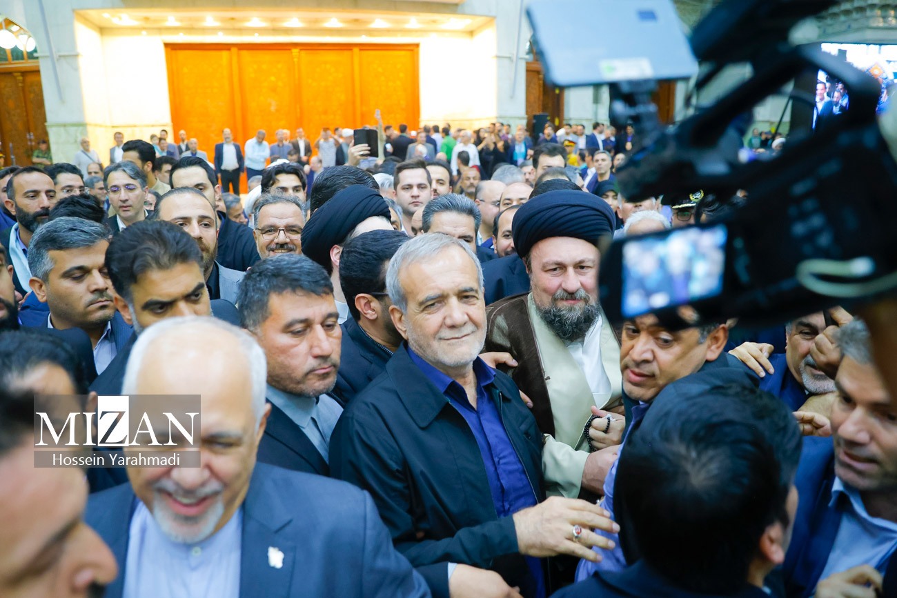 «مسعود پزشکیان» رئیس جمهور منتخب، عصر شنبه ( ۱۶ تیر ۱۴۰۳) با حضور در حرم امام خمینی (ره) ضمن تجدید میثاق با بنیانگذار جمهوری اسلامی ایران در نشست با فعالان ستادی شرکت کرد.