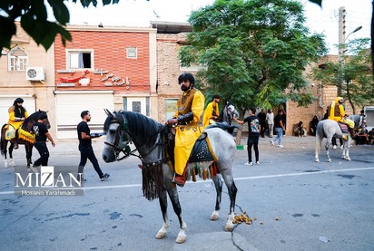 مراسم ورود نمادین شبه کاروان حسینی به سرزمین کربلا عصر هشتمین روز محرم ۱۴۴۶ با حضور اقشار مختلف مردم از شهرهای کشور از مرکز هیئت حسینی نوش آباد کاشان به طرف خیابان امام خمینی، بلوار ایثارگران، بلوار محرم و زمین خیمهگاه در این شهر برگزار شد.