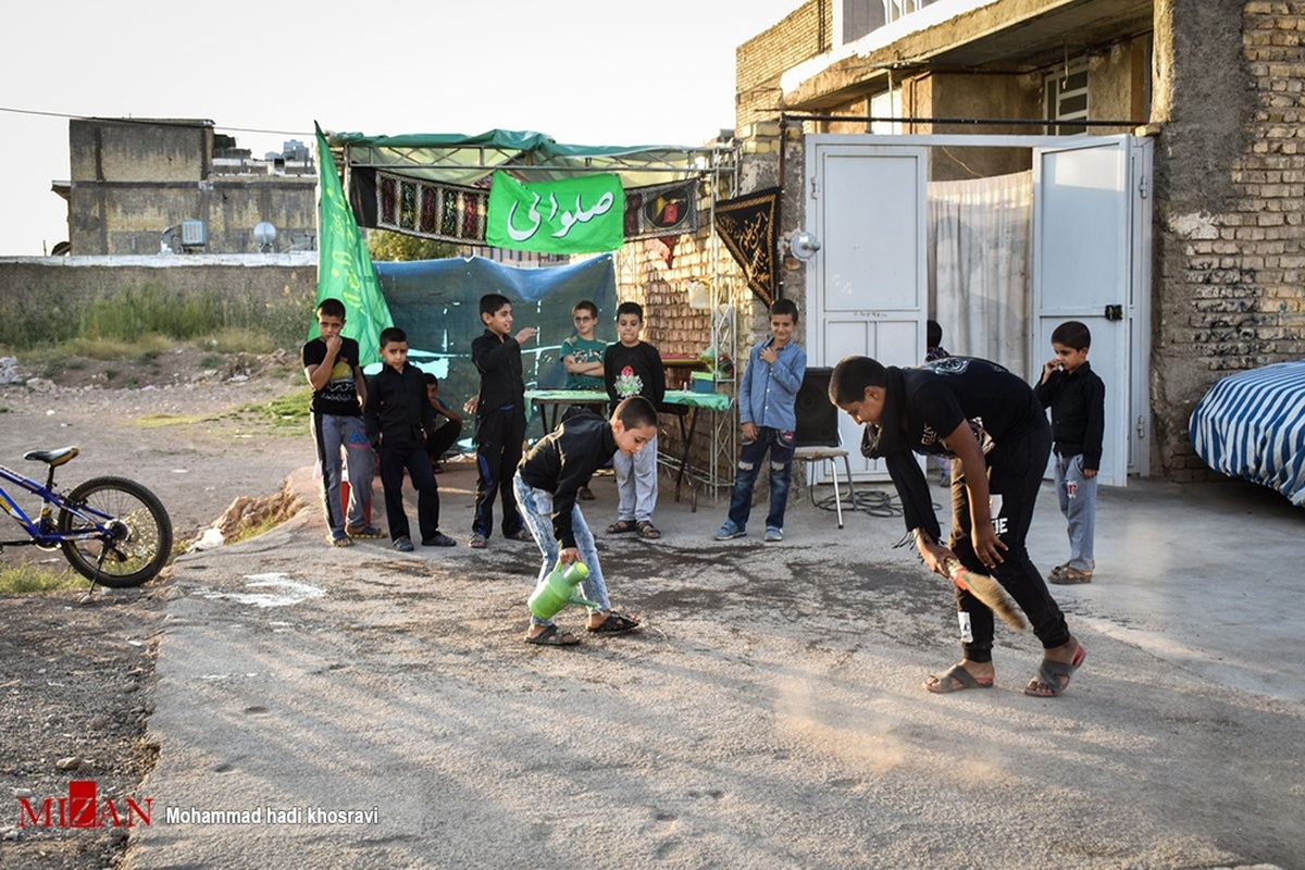 سه دختر سه بچه یک ایستگاه صلواتی دارند که به عشق فرزند زهرا یک پارچ شربت درست کرده‌اند و در گرمای تابستان در یکی از کوچه پس کوچه‌های این شهر به رهگذران شربت می‌دهند.