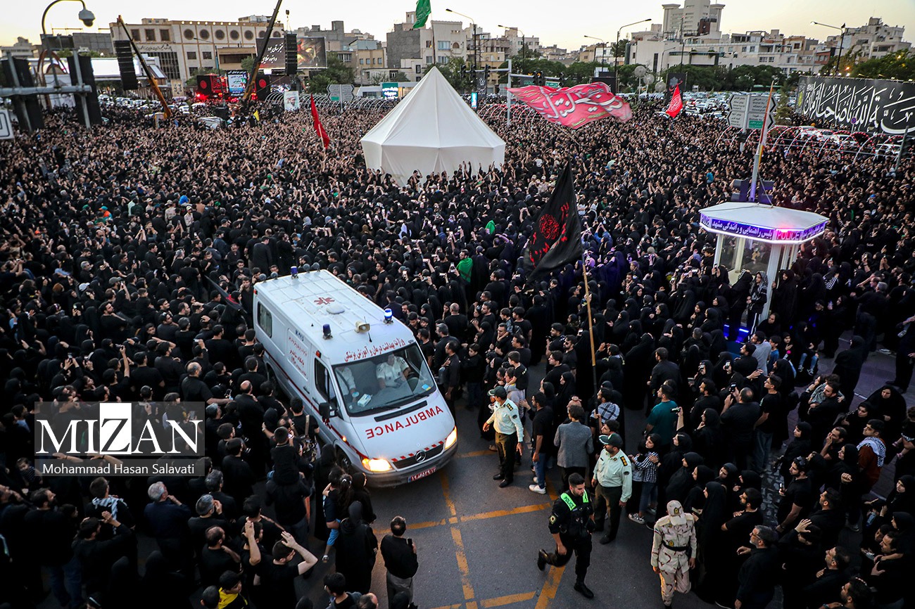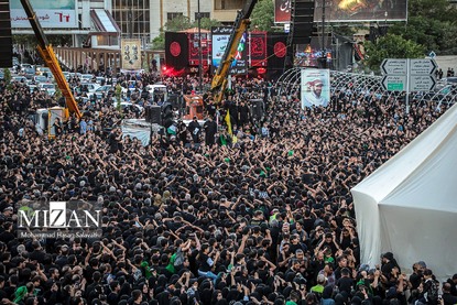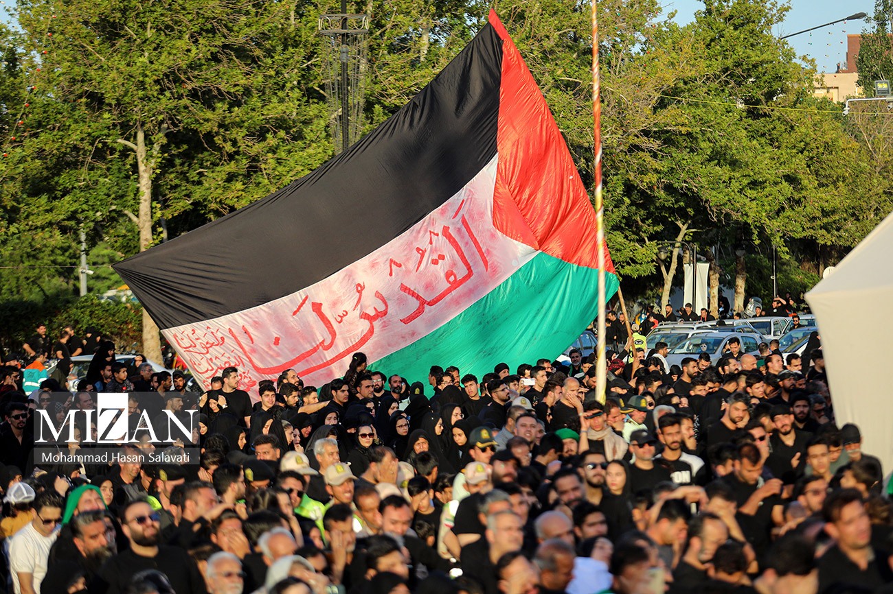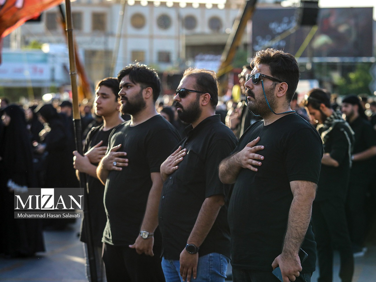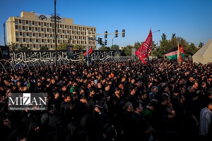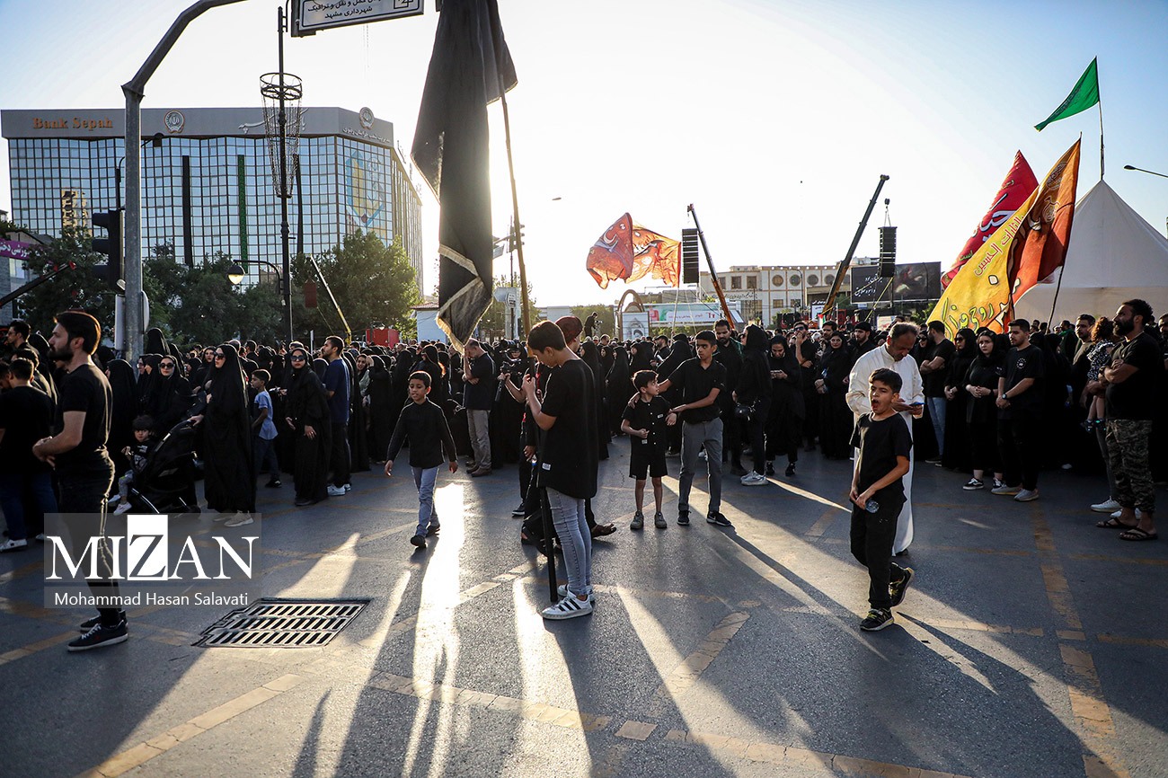 همزمان با فرارسیدن عصر عاشورا ، آیین خیمه سوزان با حضور پرشور عزاداران سید و سالار شهیدان در خیابان احمد آباد مشهد برگزار شد.