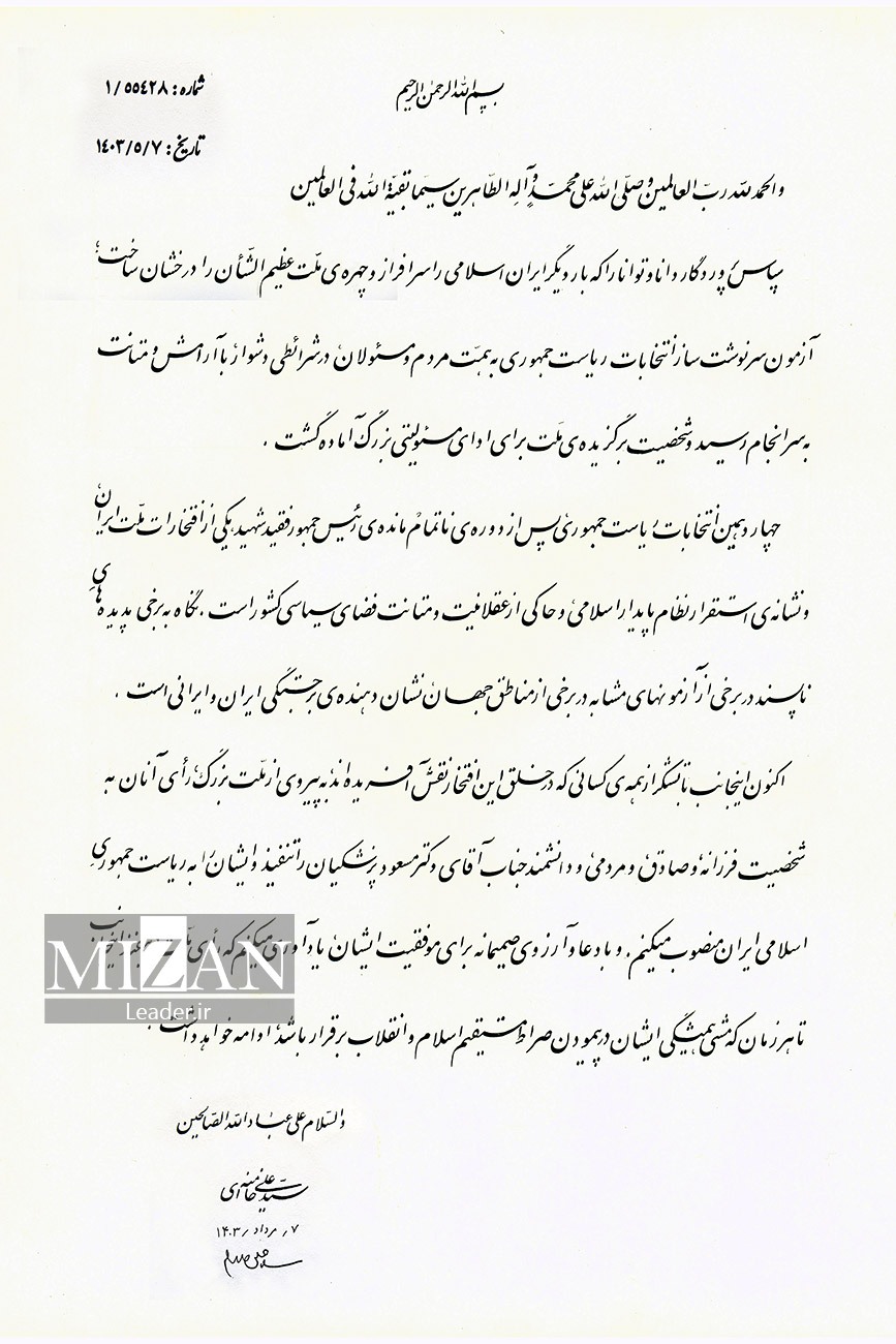 مراسم تنفیذ حکم ریاست جمهوری صبح روز یکشنبه (۷ مرداد ۱۴۰۳) در حسینیه‌ی امام خمینی (ره) برگزار شد و رهبر معظم انقلاب اسلامی با تنفیذ رأی ملت، جناب آقای دکتر مسعود پزشکیان را به عنوان ریاست جمهوری اسلامی ایران منصوب کردند.