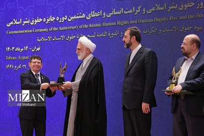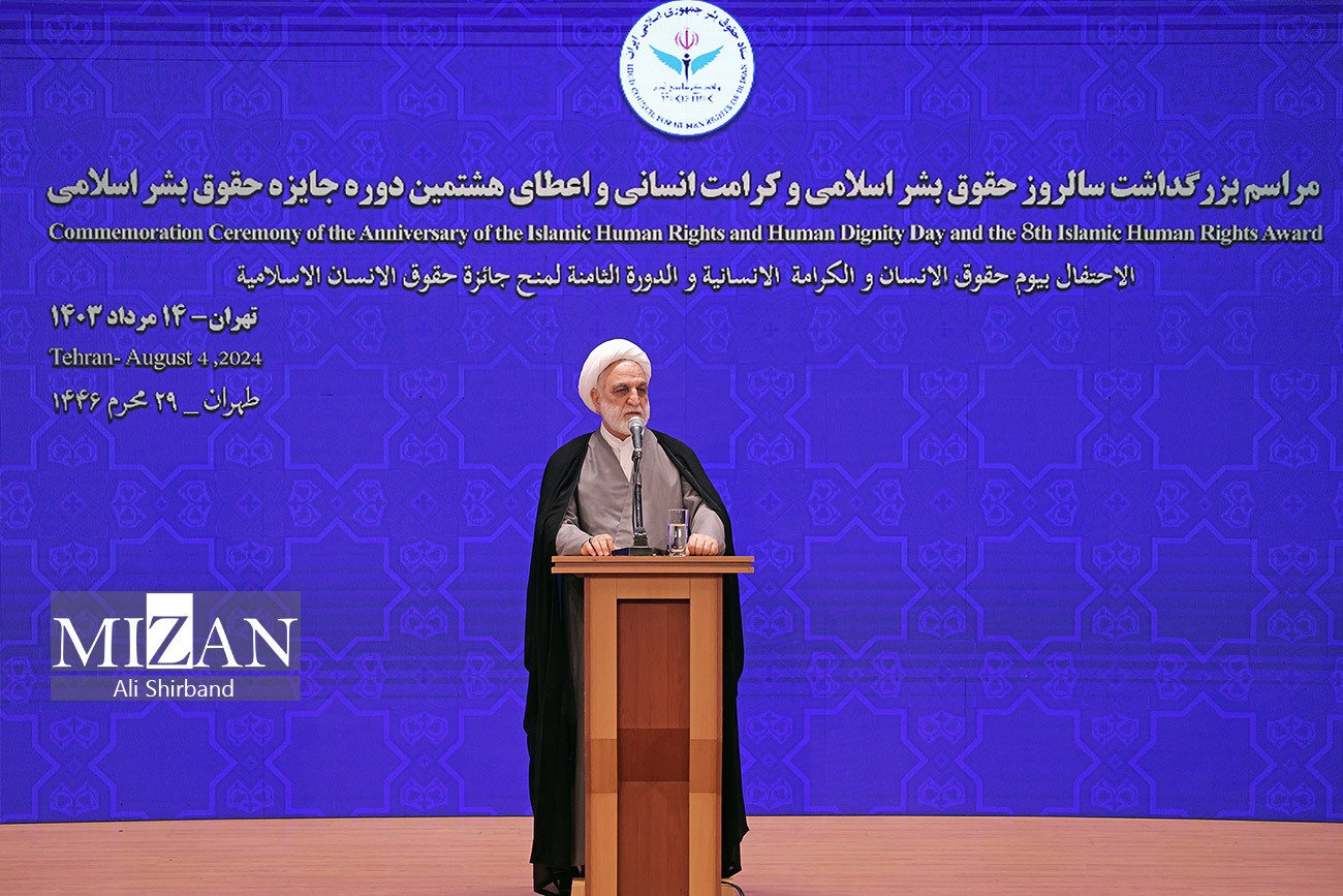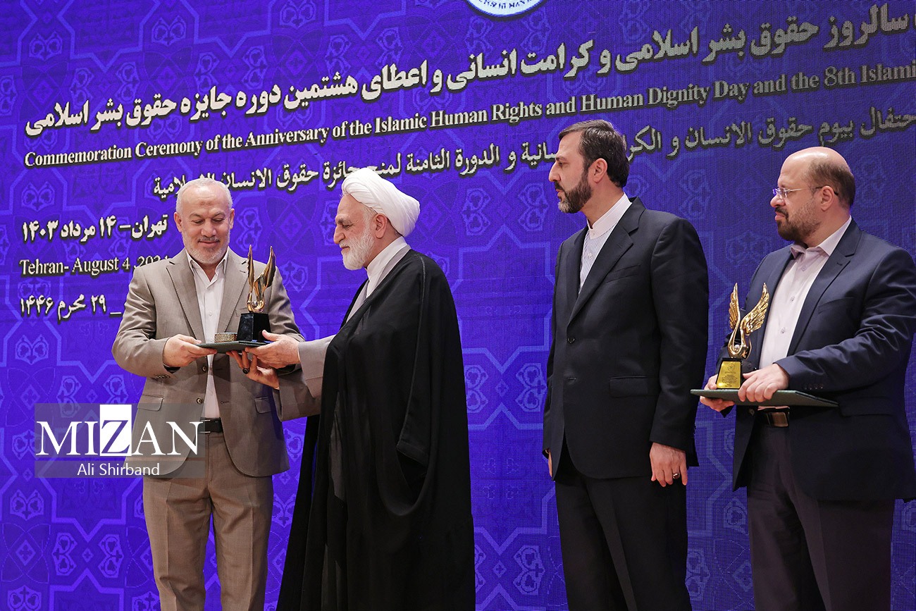 مراسم بزرگداشت سالروز حقوق بشر اسلامی و کرامت انسانی و اعطای هشتمین دوره جایزه حقوق بشر اسلامی با حضور حجتالاسلام والمسلمین محسنی اژهای رئیس قوه قضاییه روز یکشنبه (۱۴ مرداد ۱۴۰۳) برگزار شد.