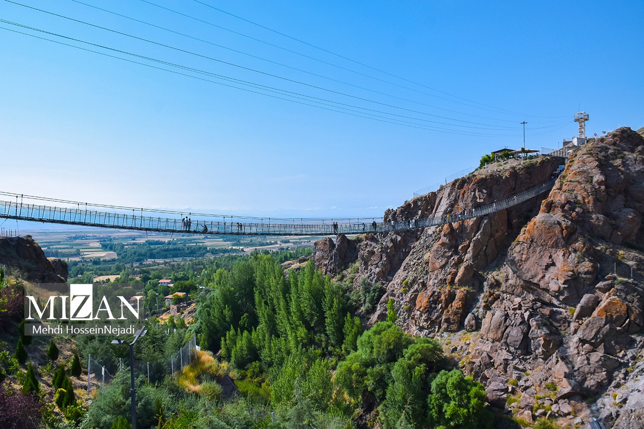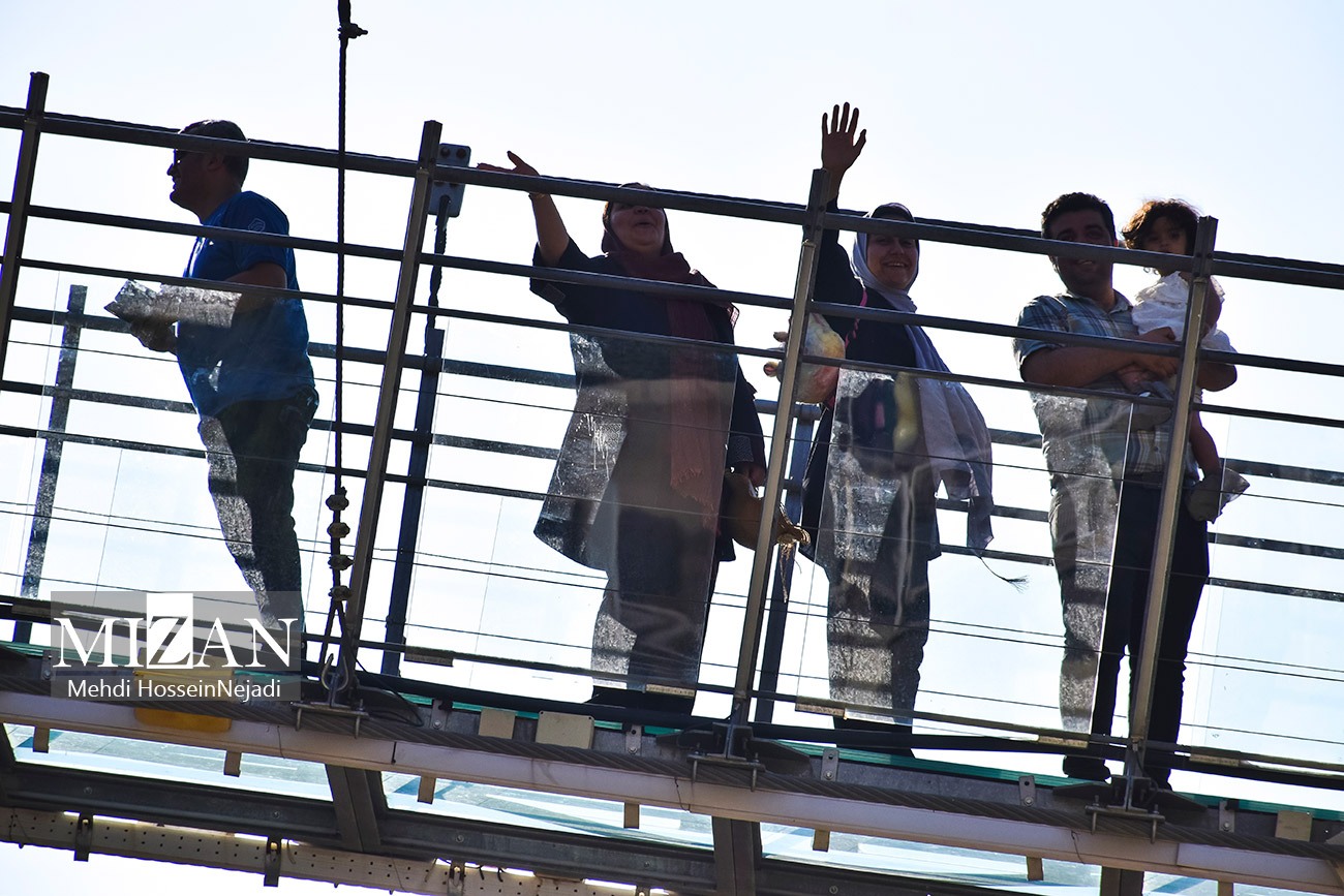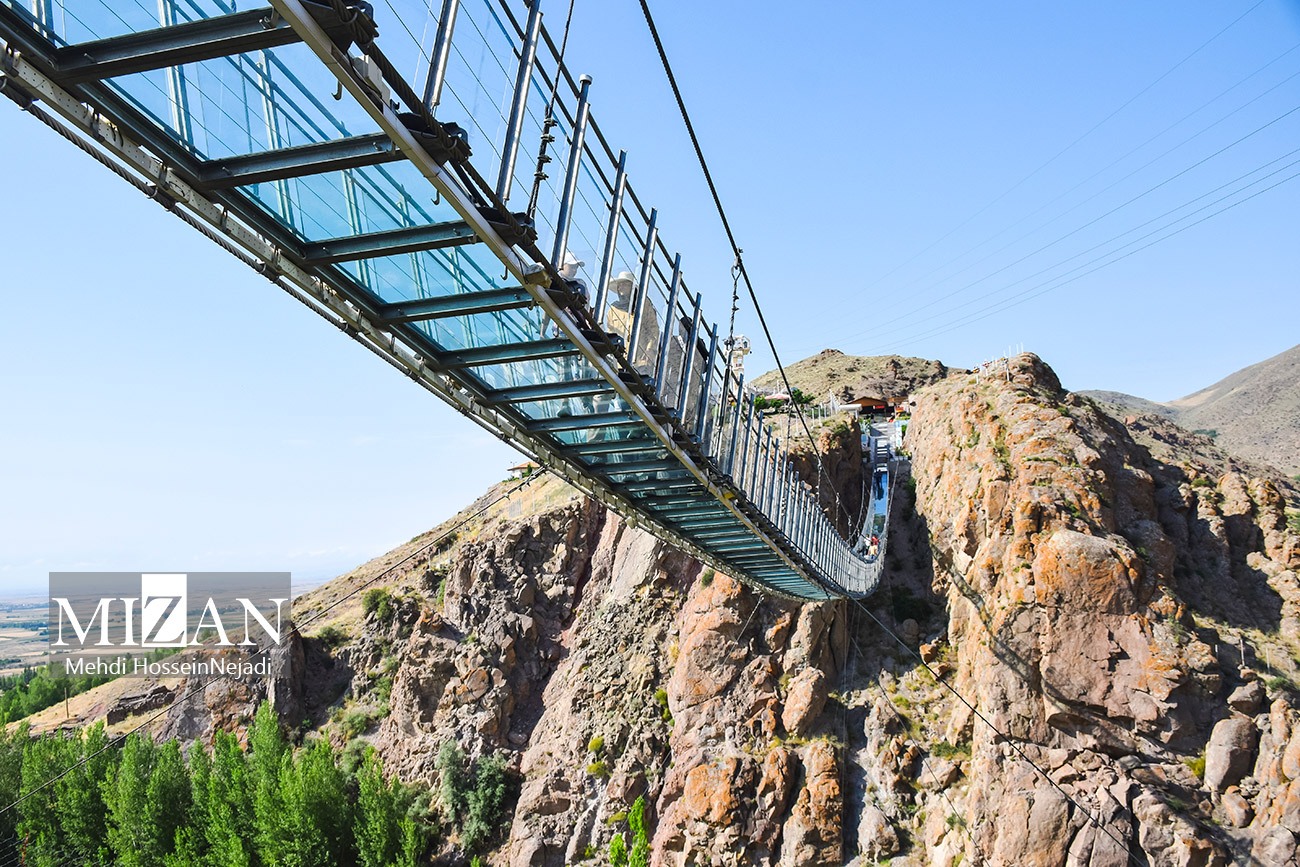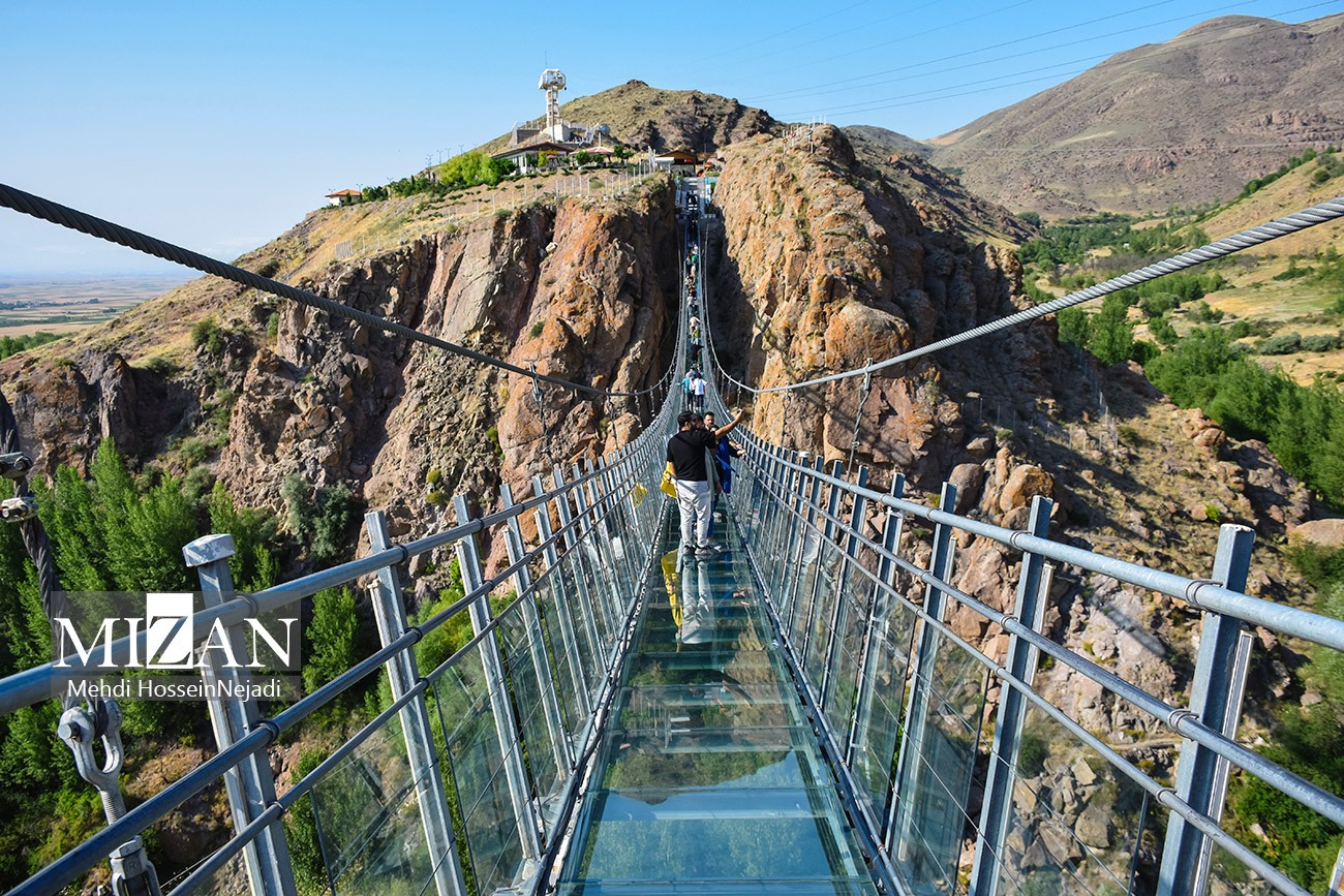 پل معلق تمام شیشهای هیر به ارتفاع ۸۰ متر، طول ۲۱۰ متر و عرض ۱۲۰سانتی متر در شهر هیر و در ۲۵ کیلومتری شهر اردبیل معروف به باغ شهر هیر واقع شده است. این پل معلق شیشهای که با طراحی مهندسان ایرانی انجام شده است، دارای دو ویژگی معلق و قوسی شکل بودن است و کلیه قطعات شیشهای و کابلهای فلزی آن با کیفیت عالی در داخل ایران ساخته شده است. ایستادن بر روی شیشه و لرزش همزمان پل معلق بسیار هیجان آفرین است و در طول سال این پل شیشهای که بر روی رودخانه پردرخت هیرچایی احداث شده و دارای امکاناتی نظیر زیپ لاین، بگ جامپ و پرش از ارتفاع و شهر بازی کودکان است، میزبان مسافران و گردشگران داخلی و خارجی است.