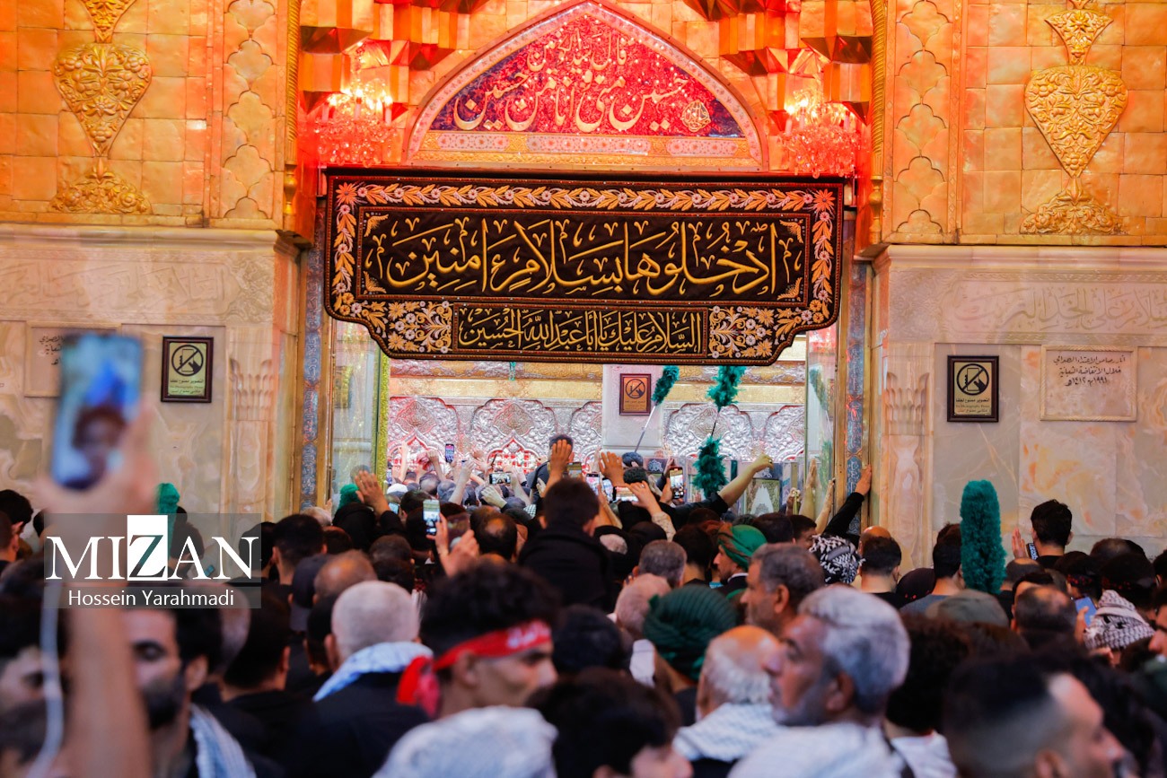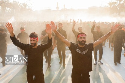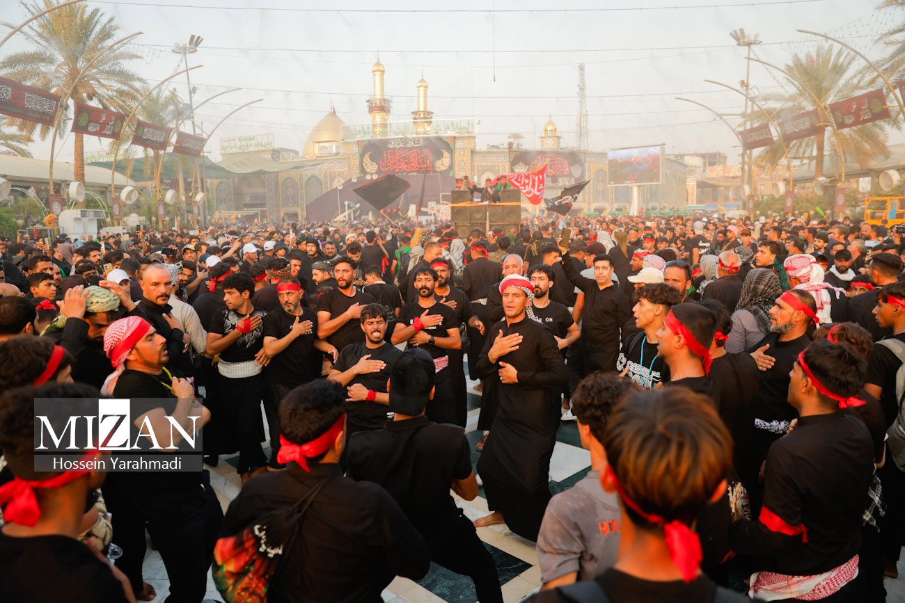 همزمان با اربعین حسینی (ع)، دستههای سینه زنی و زنجیرزنی در حرمهای مطهر و بین الحرمین به همراه زائرانی که خود را به کربلا رساندهاند به عزاداری میپردازند.